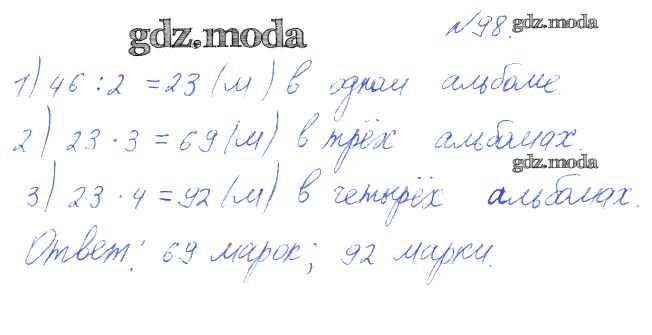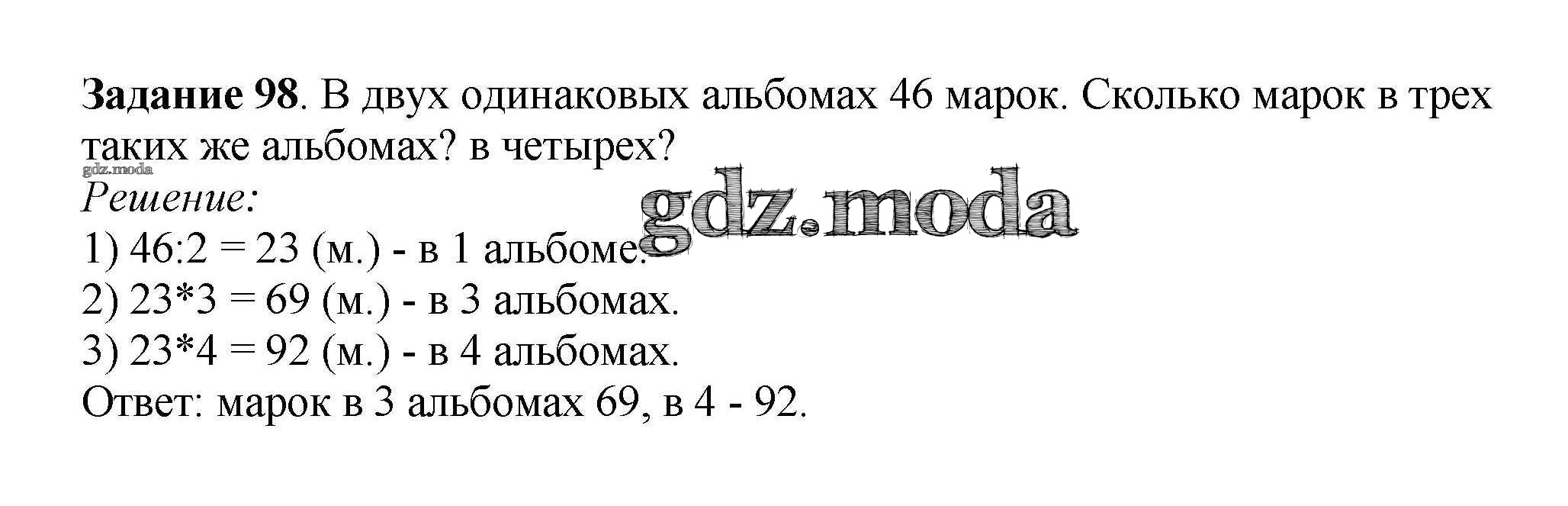 ГДЗ решение к заданию № 98 Математика 3 класс Истомина Н.Б. Ассоциация 21 век 2014 Часть 1, Часть 2 ФГОС бесплатно на гдз.мода!