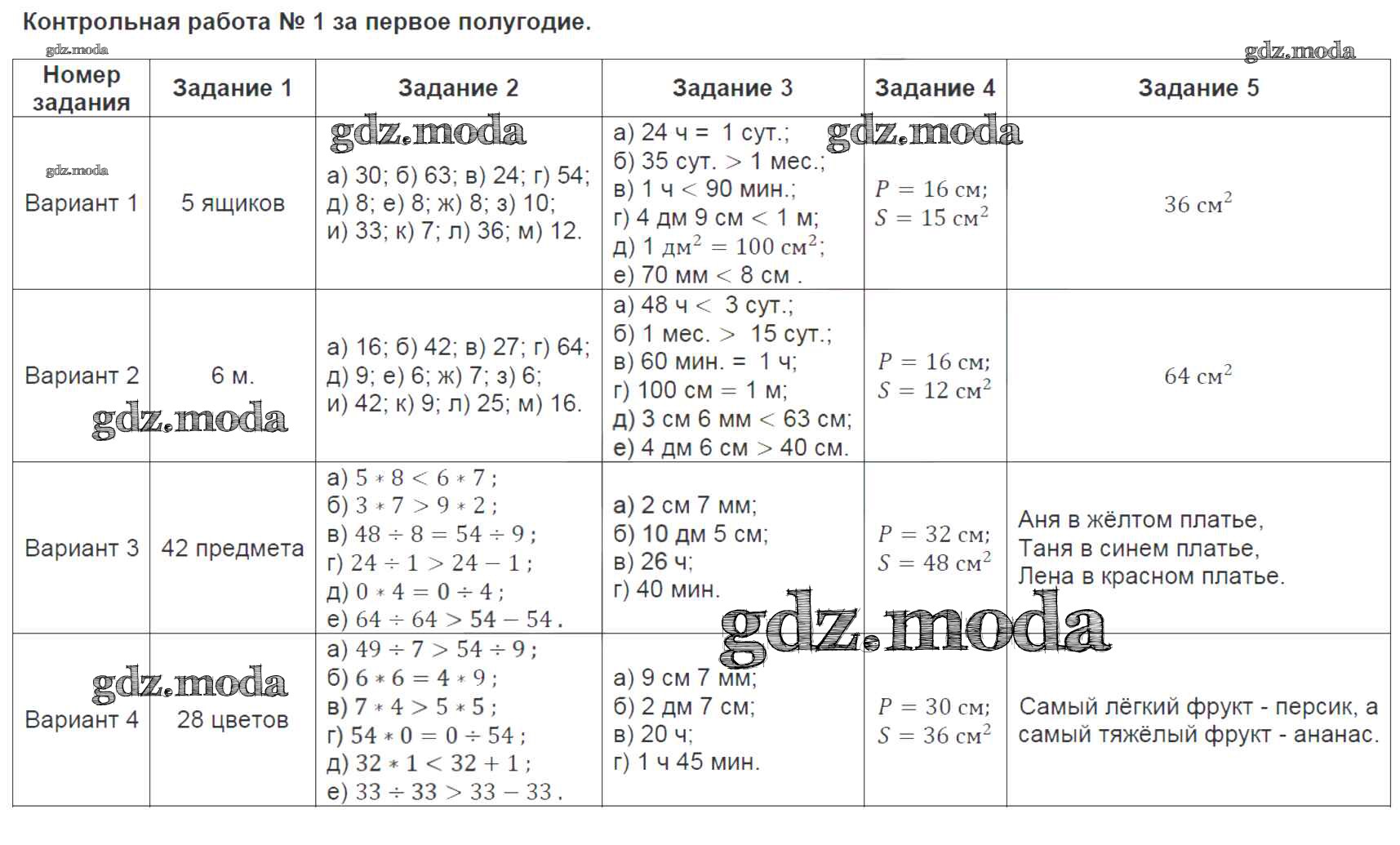 ОТВЕТ на задание № 1 Контрольно-измерительные материалы (КИМ) по Математике 3 класс Ситникова