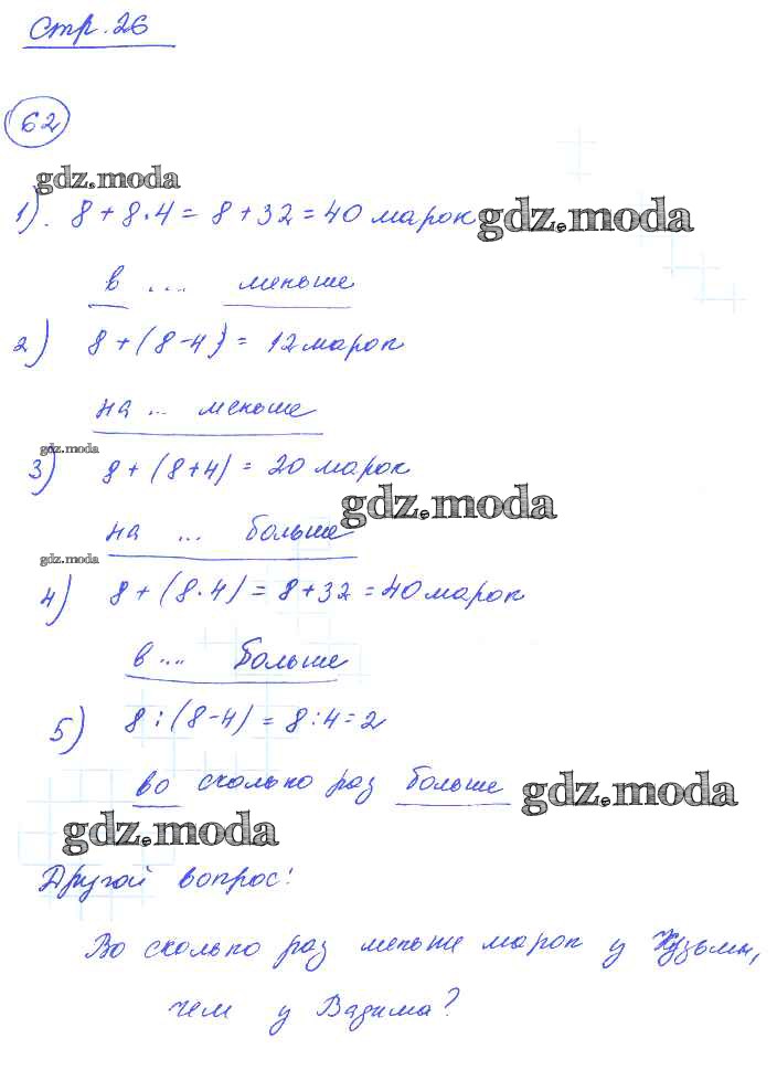ГДЗ решение к заданию № 26 Математика 3 класс рабочая тетрадь Кремнева С.Ю. Экзамен 2018 Часть 1, Часть 2 ФГОС бесплатно на гдз.мода!