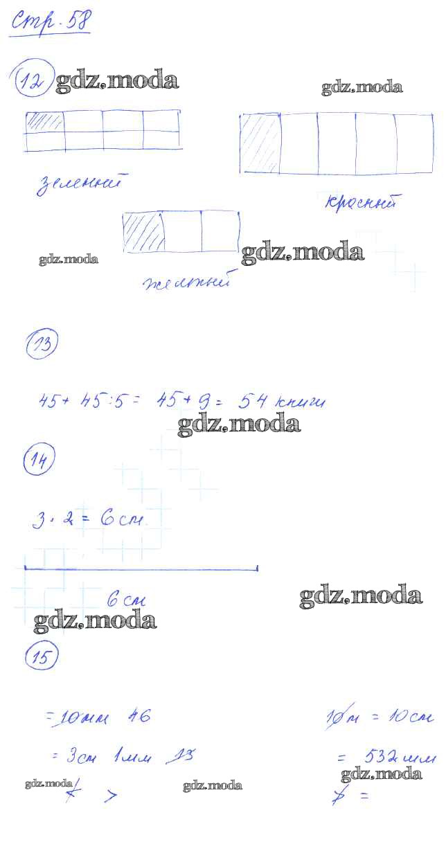 ГДЗ решение к заданию № 58 Математика 3 класс рабочая тетрадь Кремнева С.Ю. Экзамен 2018 Часть 1, Часть 2 ФГОС бесплатно на гдз.мода!