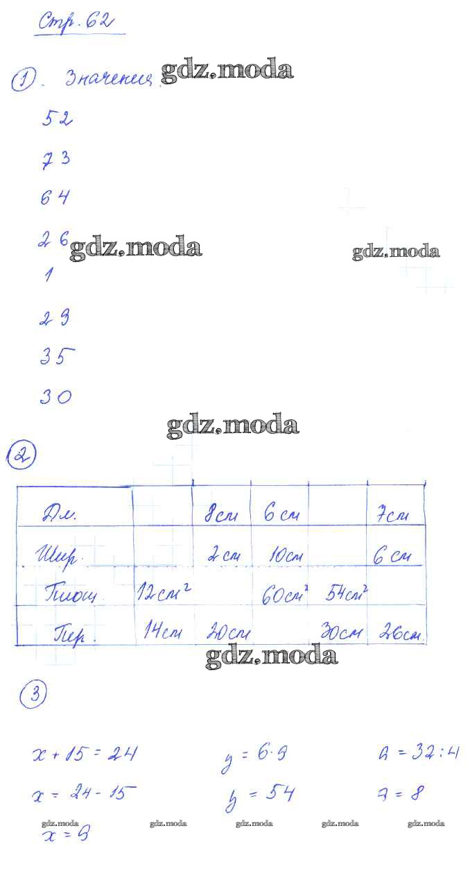 ГДЗ решение к заданию № 62 Математика 3 класс рабочая тетрадь Кремнева С.Ю. Экзамен 2018 Часть 1, Часть 2 ФГОС бесплатно на гдз.мода!