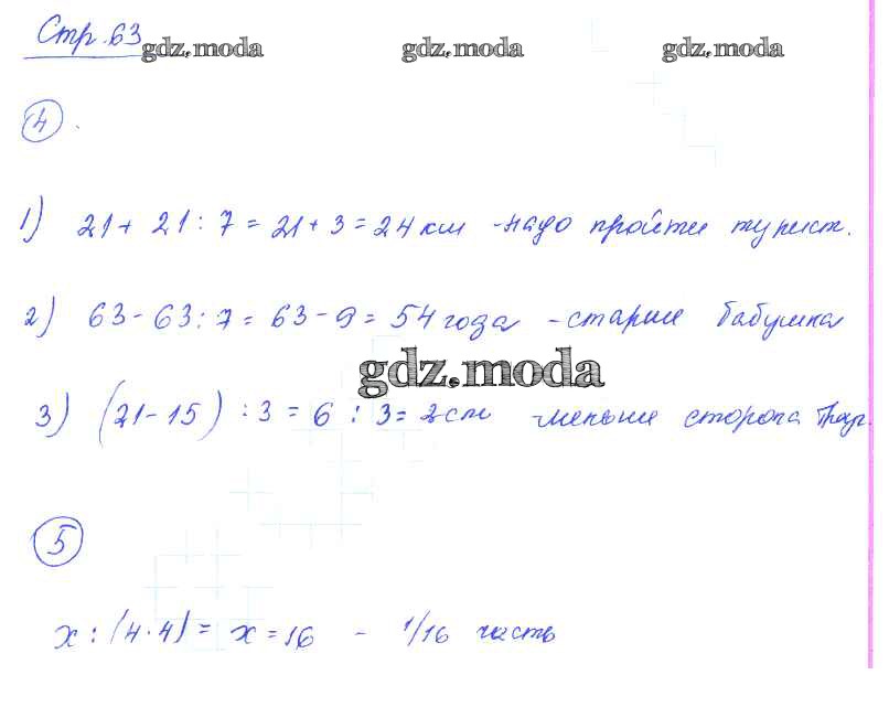ГДЗ решение к заданию № 63 Математика 3 класс рабочая тетрадь Кремнева С.Ю. Экзамен 2018 Часть 1, Часть 2 ФГОС бесплатно на гдз.мода!