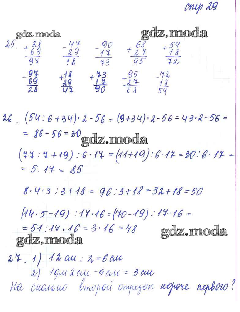 ГДЗ решение к заданию № 29 Математика 3 класс рабочая тетрадь Кремнева С.Ю. Экзамен 2018 Часть 1, Часть 2 ФГОС бесплатно на гдз.мода!