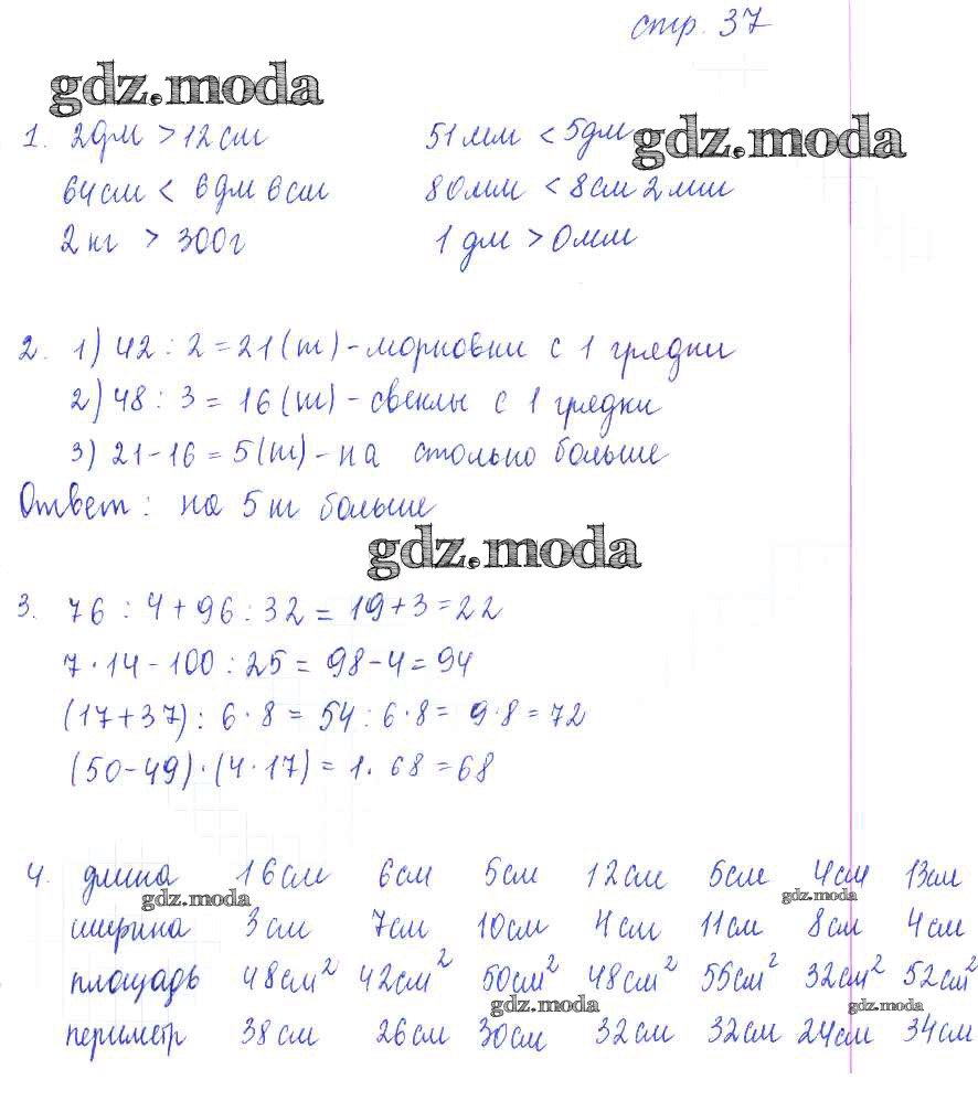 ГДЗ решение к заданию № 37 Математика 3 класс рабочая тетрадь Кремнева С.Ю. Экзамен 2018 Часть 1, Часть 2 ФГОС бесплатно на гдз.мода!