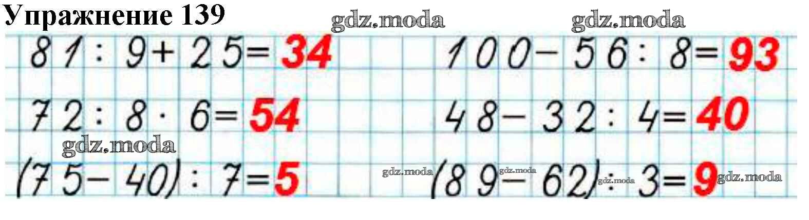 ОТВЕТ на задание № 139 Рабочая тетрадь по Математике 3 класс Моро Школа России