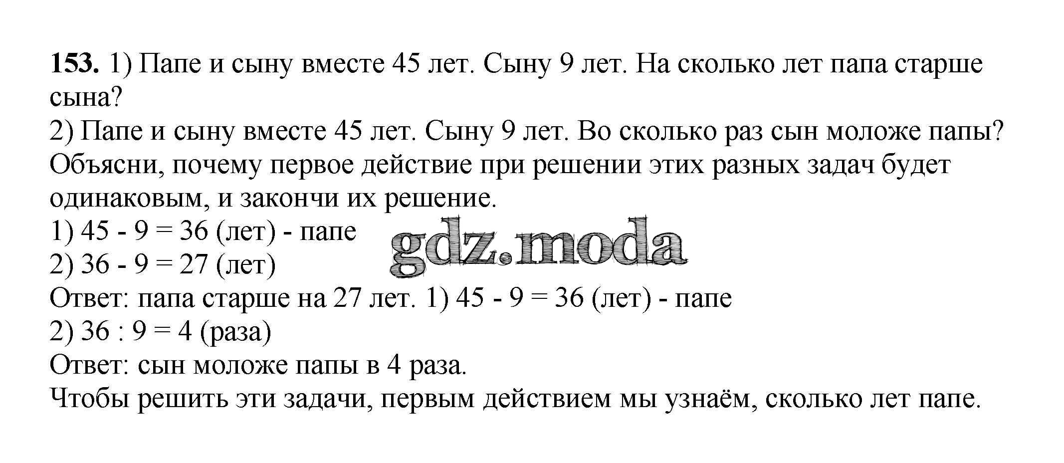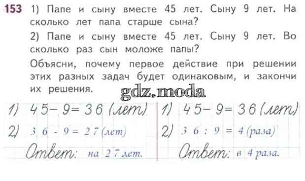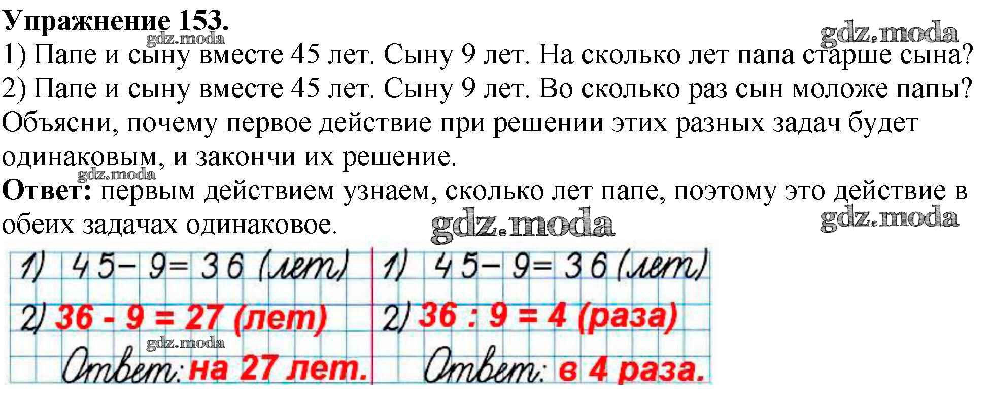 ОТВЕТ на задание № 153 Рабочая тетрадь по Математике 3 класс Моро Школа России