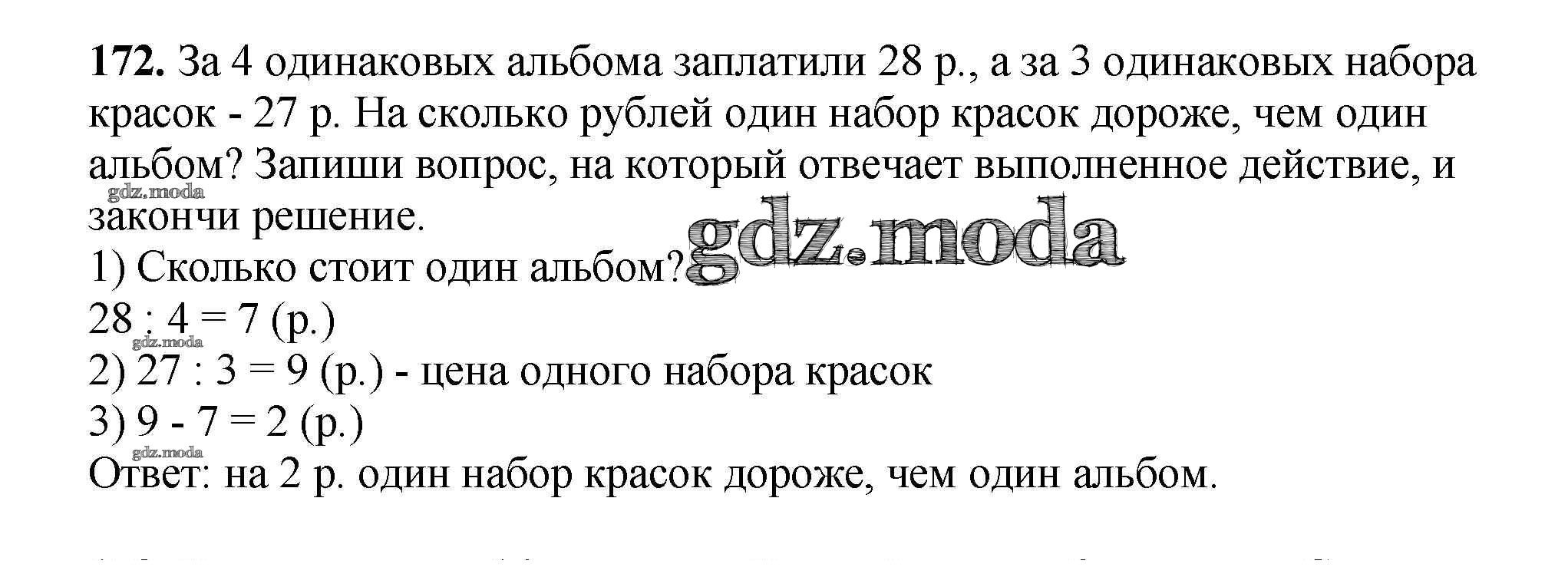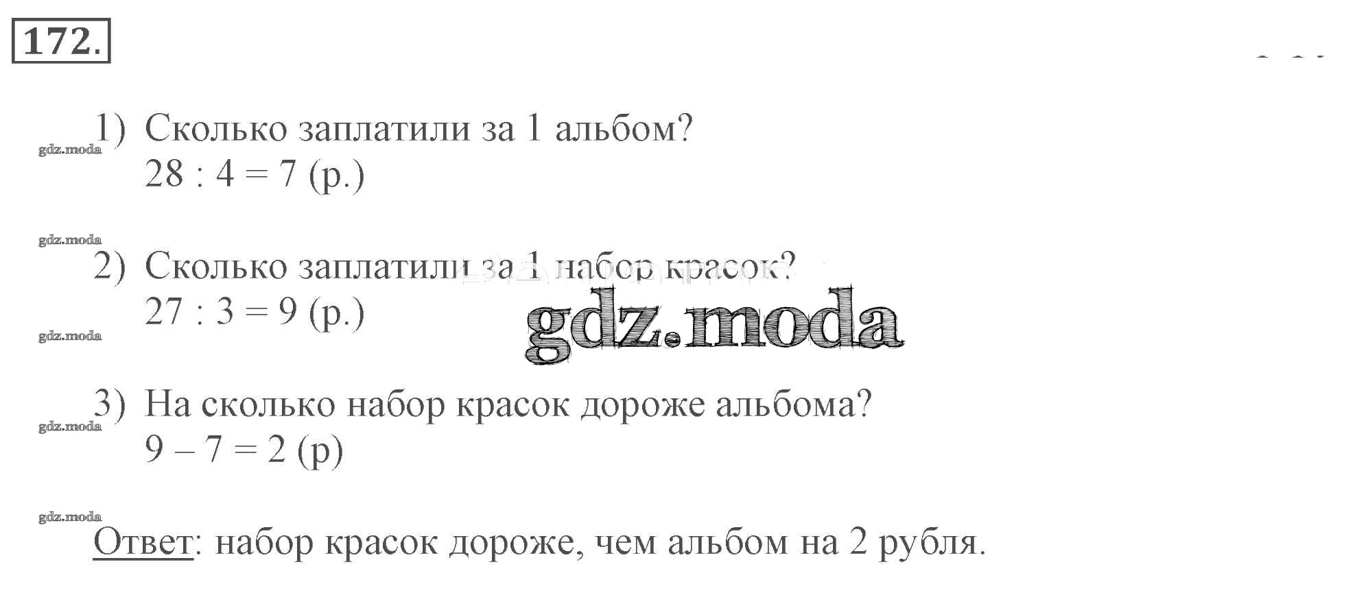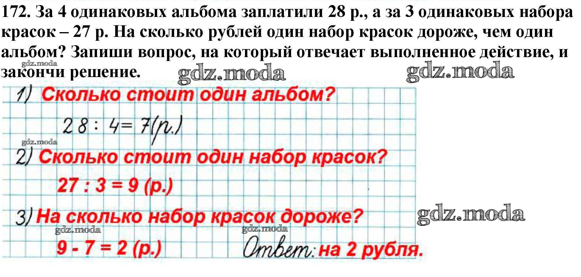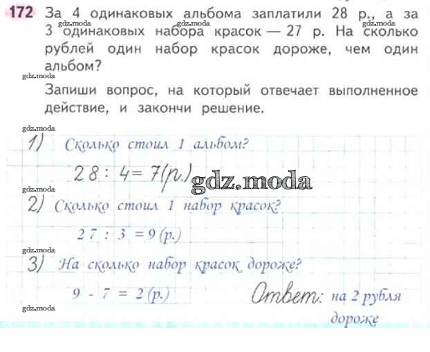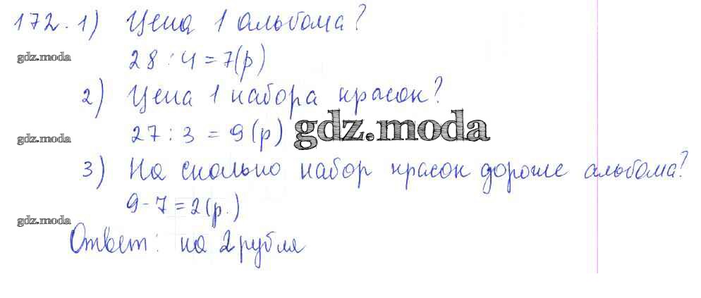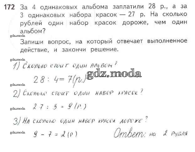 ОТВЕТ на задание № 172 Рабочая тетрадь по Математике 3 класс Моро Школа России