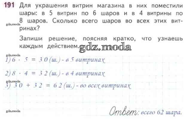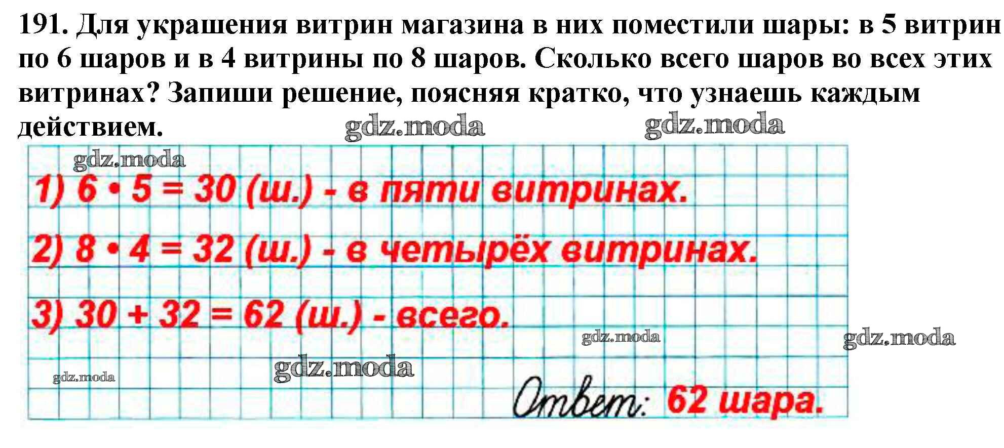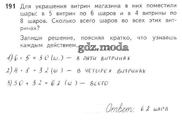 ОТВЕТ на задание № 191 Рабочая тетрадь по Математике 3 класс Моро Школа России