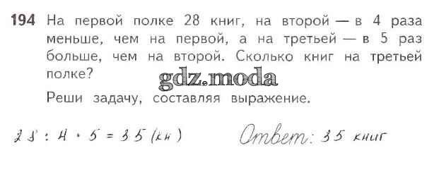 ОТВЕТ на задание № 194 Рабочая тетрадь по Математике 3 класс Моро Школа России