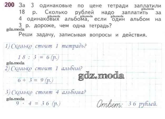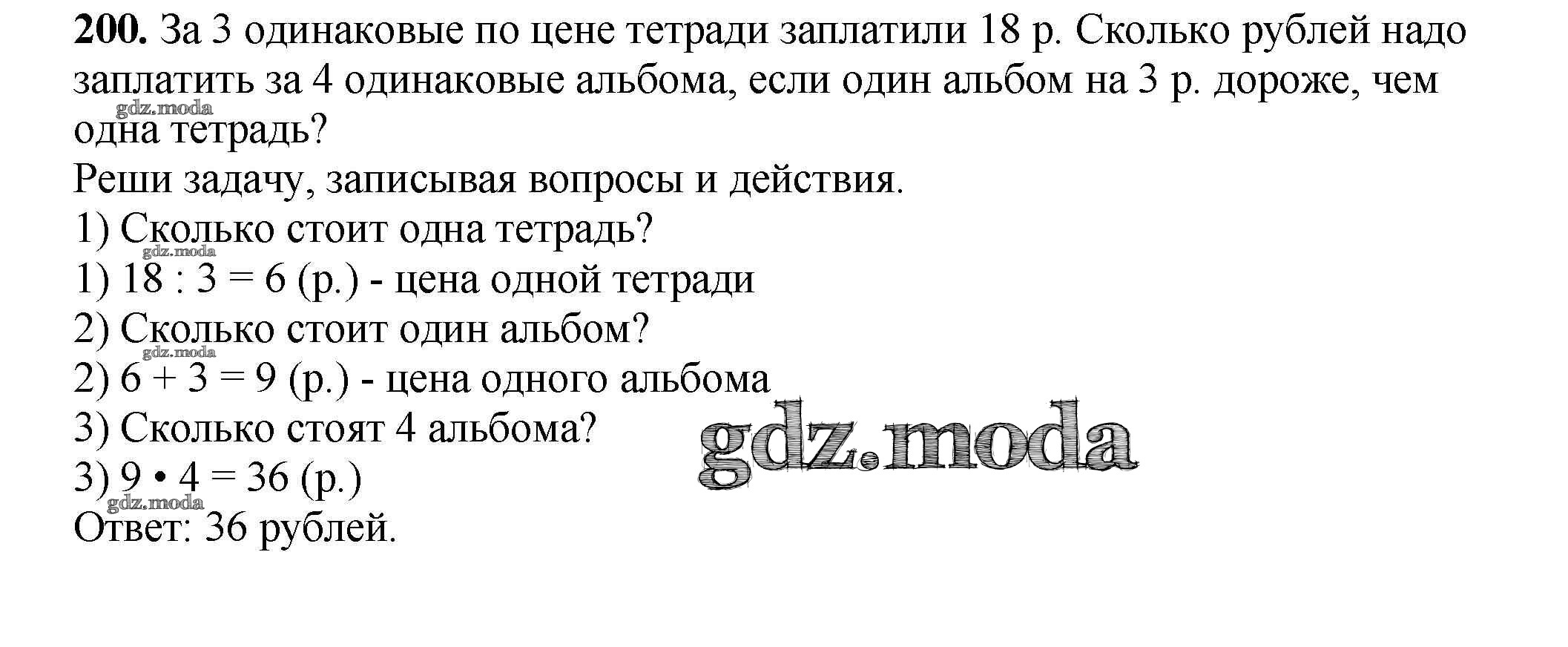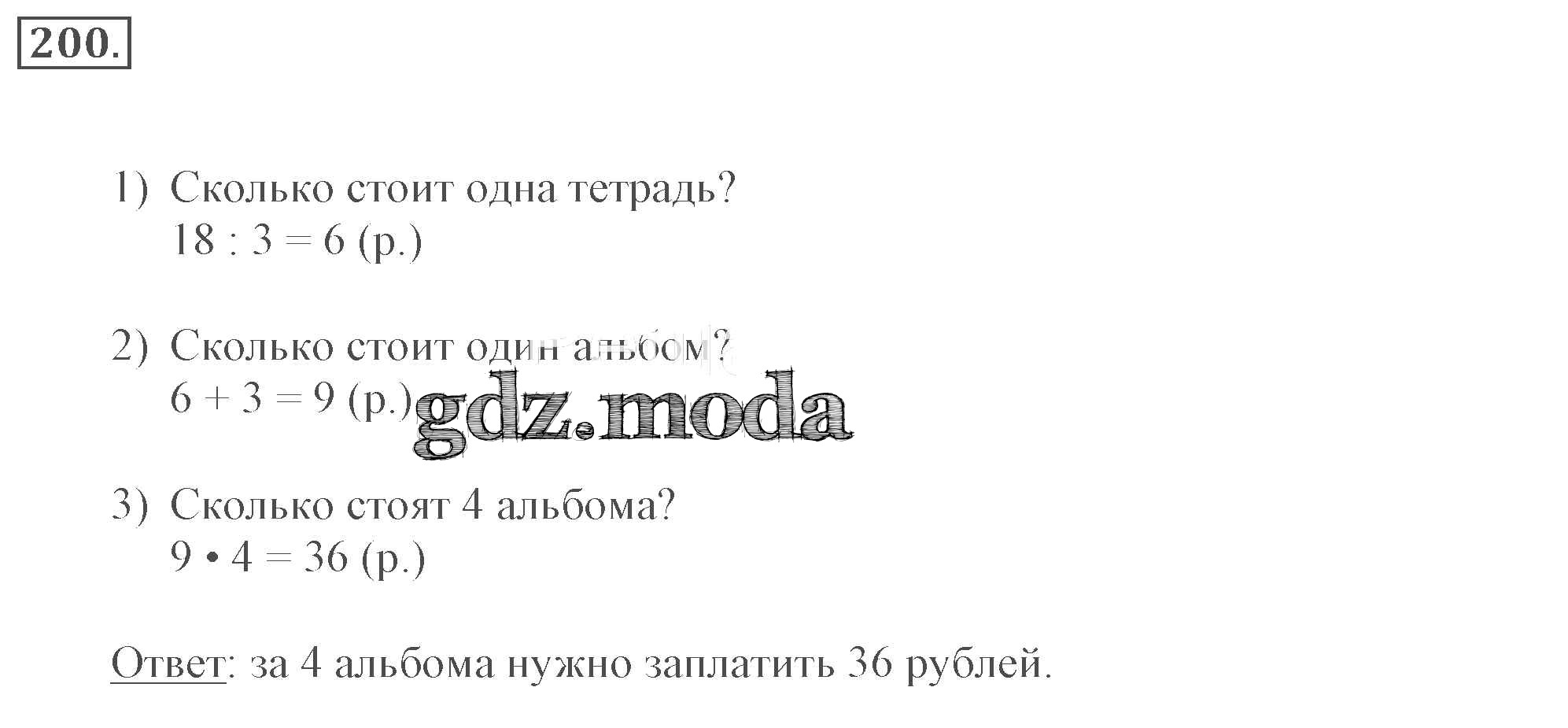 ОТВЕТ на задание № 200 Рабочая тетрадь по Математике 3 класс Моро Школа России