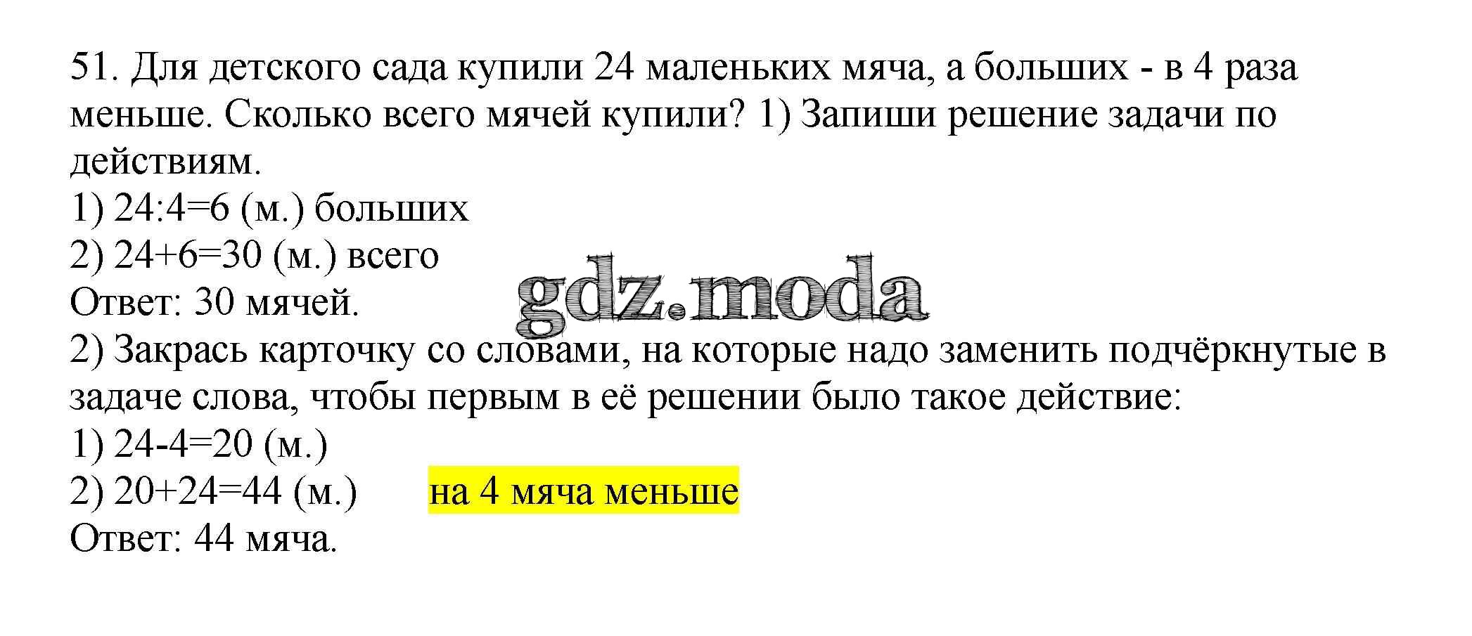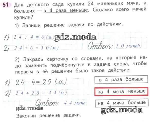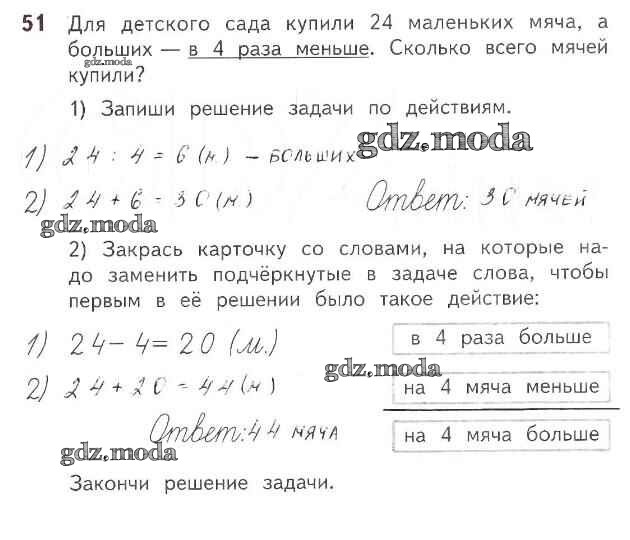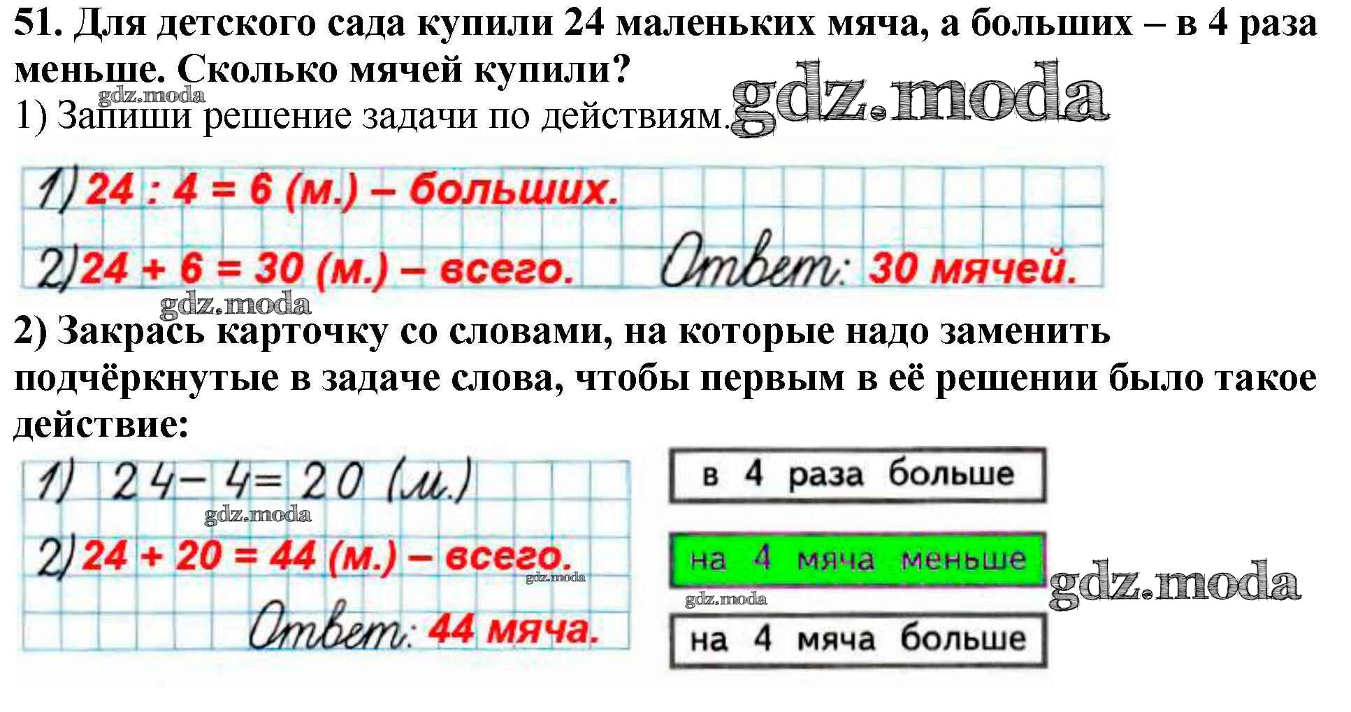 ОТВЕТ на задание № 51 Рабочая тетрадь по Математике 3 класс Моро Школа России