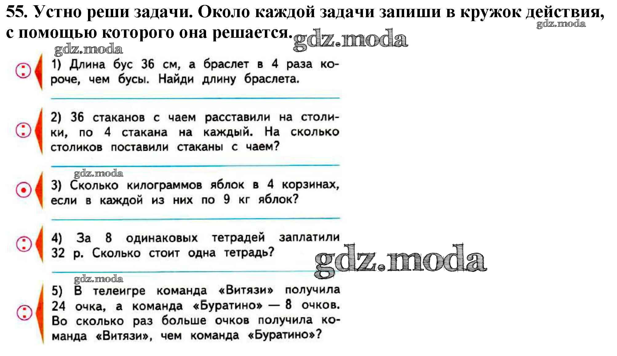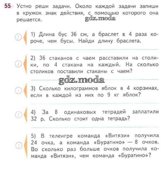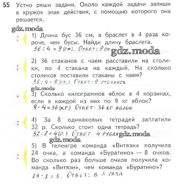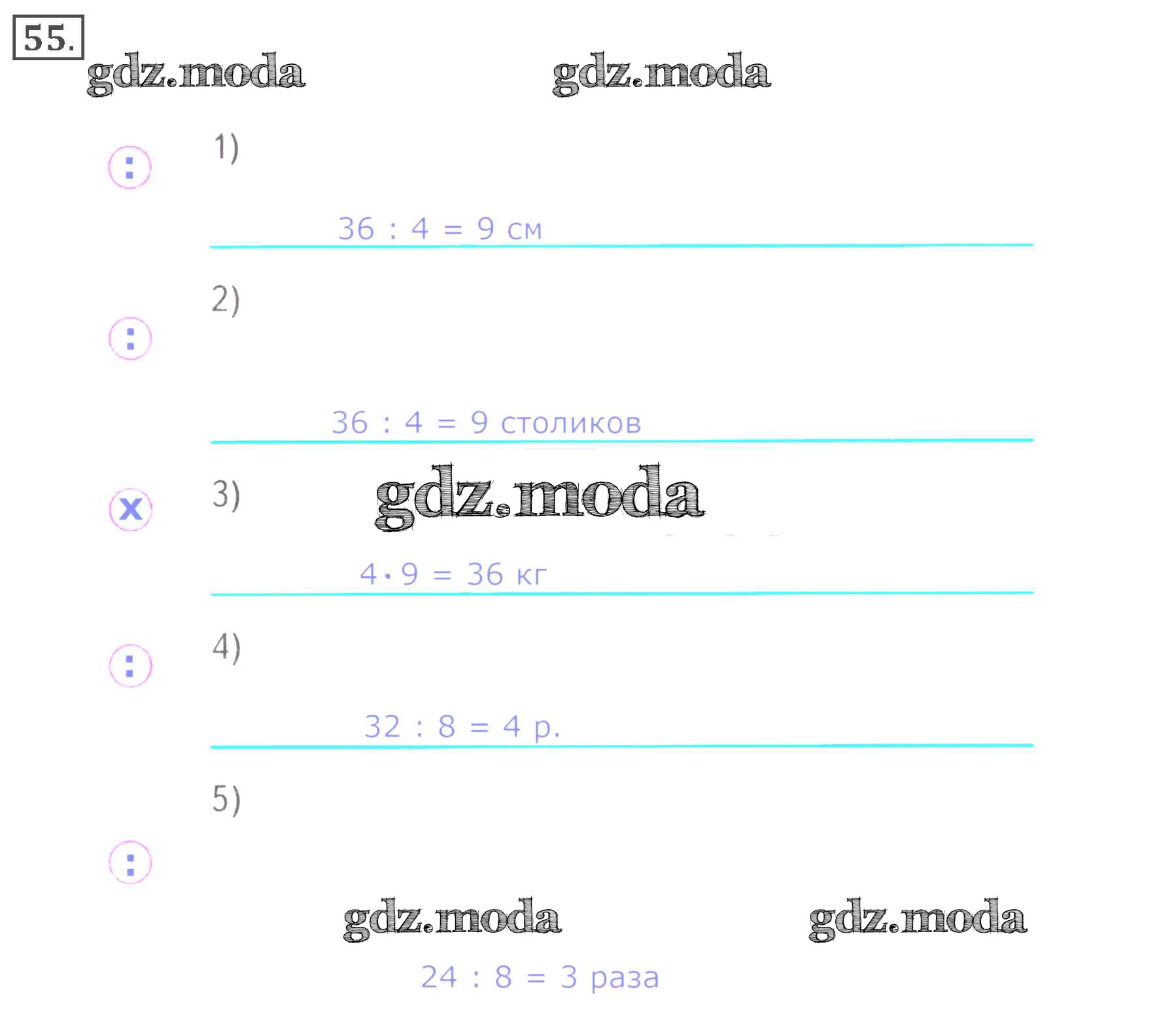 ОТВЕТ на задание № 55 Рабочая тетрадь по Математике 3 класс Моро Школа России