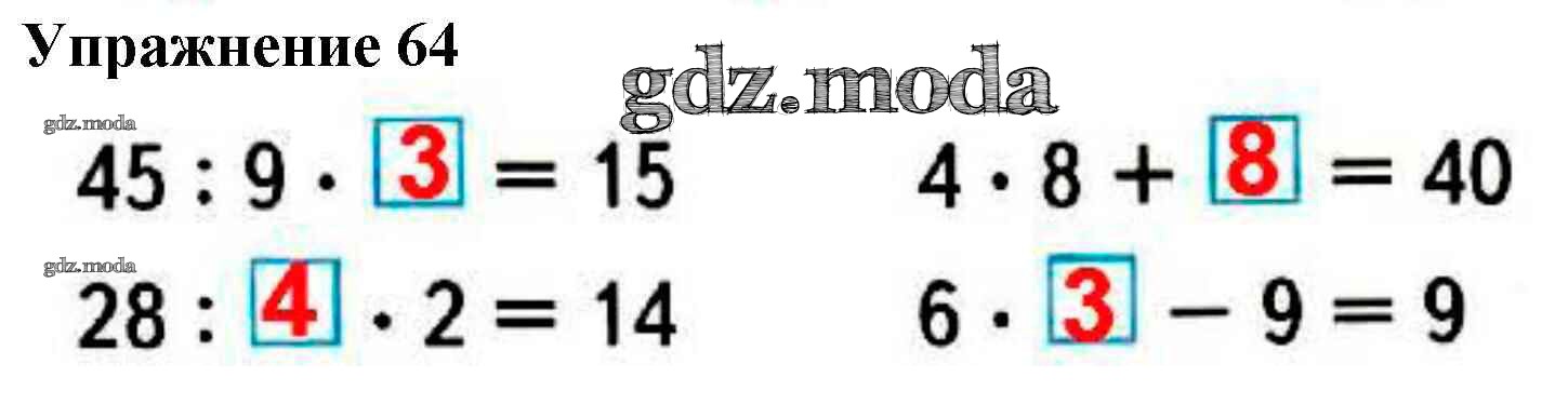 ОТВЕТ на задание № 64 Рабочая тетрадь по Математике 3 класс Моро Школа России