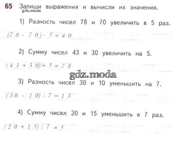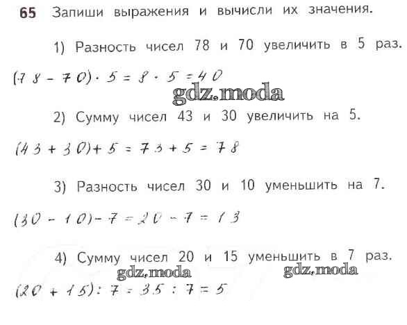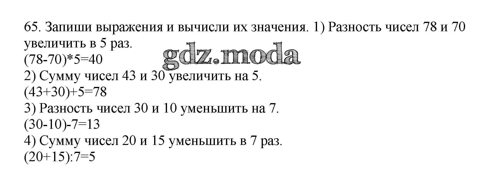 ОТВЕТ на задание № 65 Рабочая тетрадь по Математике 3 класс Моро Школа России