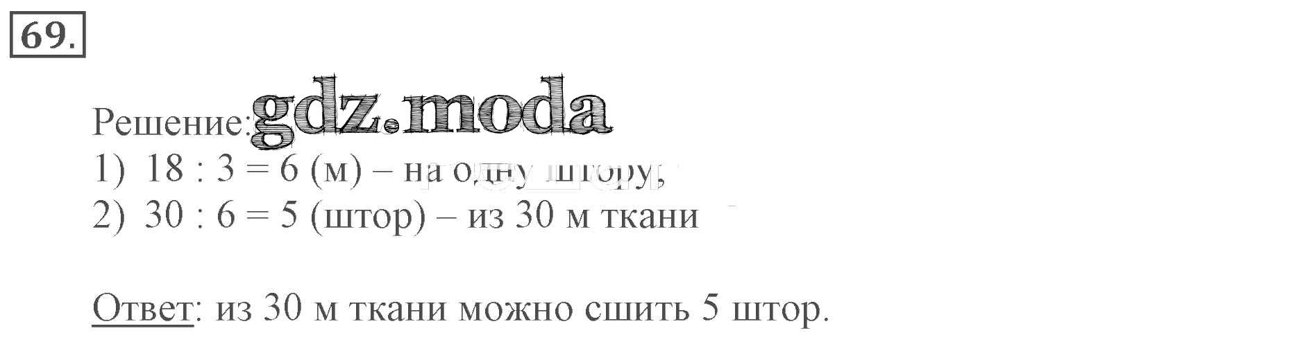 ОТВЕТ на задание № 69 Рабочая тетрадь по Математике 3 класс Моро Школа России