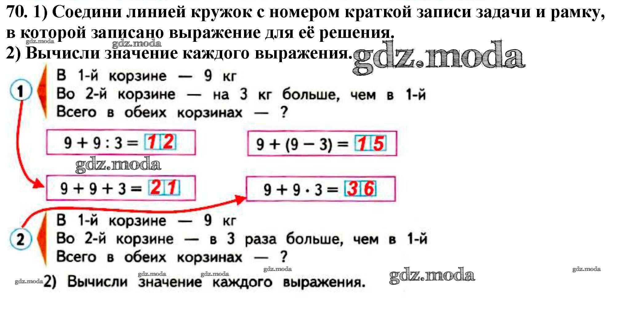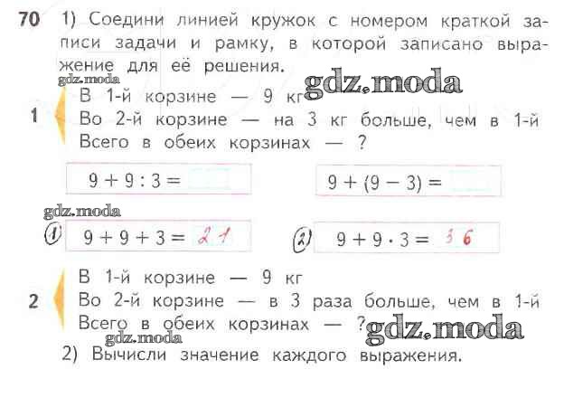 ОТВЕТ на задание № 70 Рабочая тетрадь по Математике 3 класс Моро Школа России