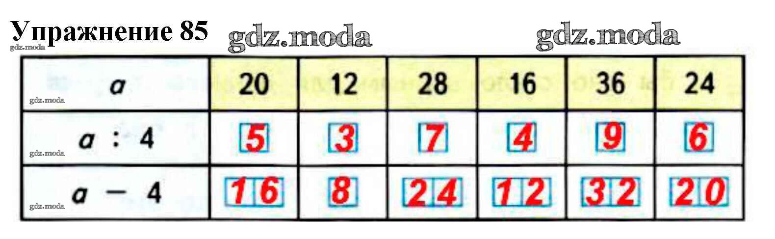 ОТВЕТ на задание № 85 Рабочая тетрадь по Математике 3 класс Моро Школа России