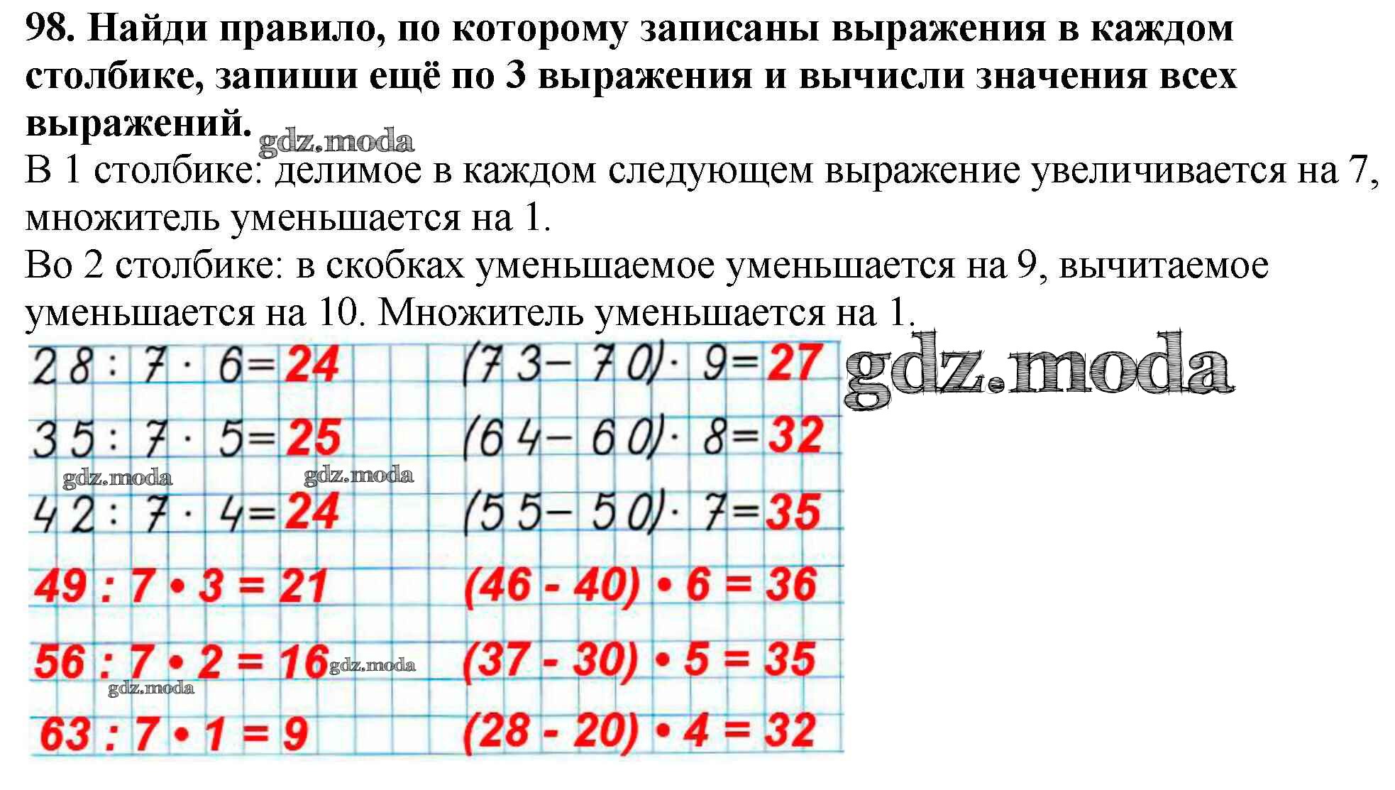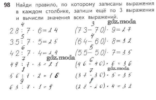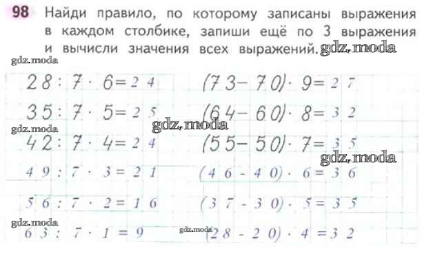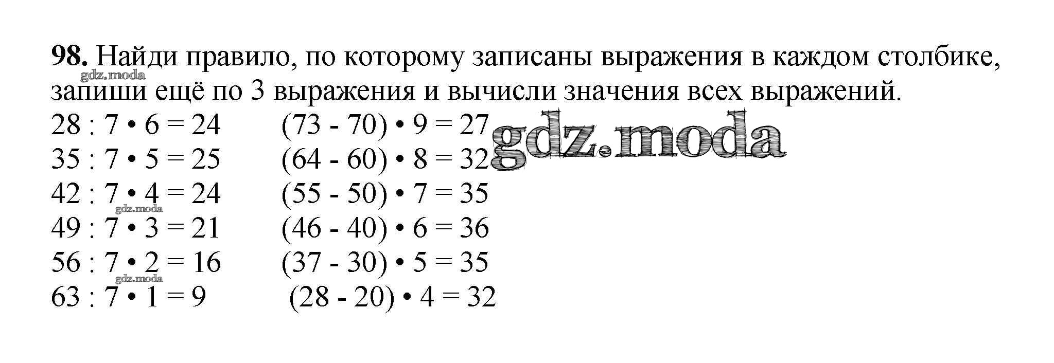 ОТВЕТ на задание № 98 Рабочая тетрадь по Математике 3 класс Моро Школа России
