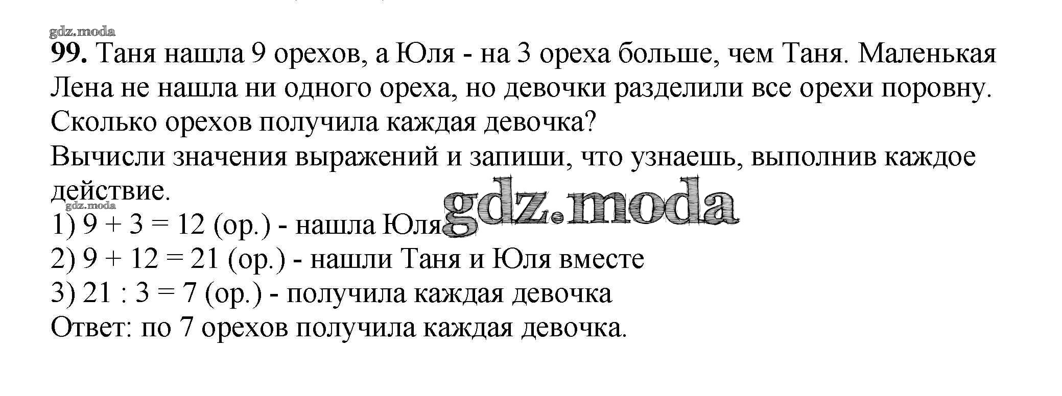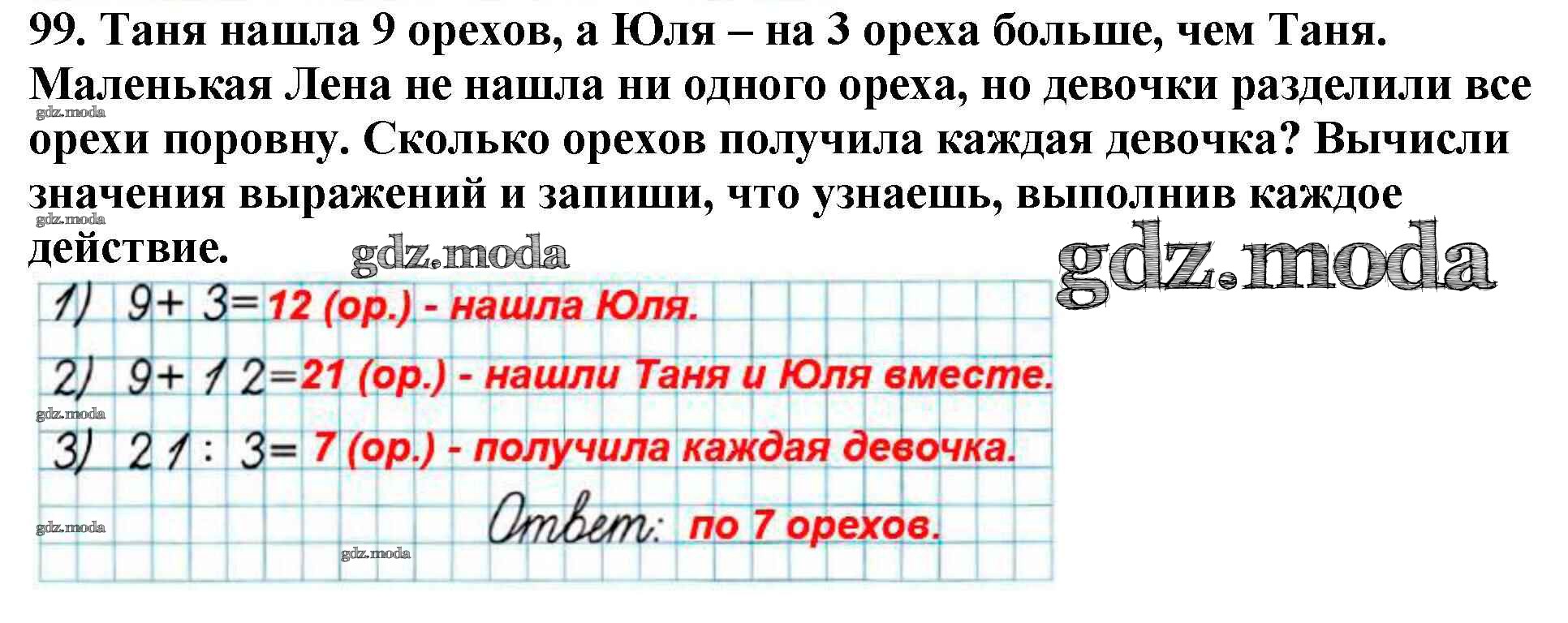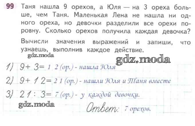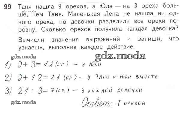 ОТВЕТ на задание № 99 Рабочая тетрадь по Математике 3 класс Моро Школа России