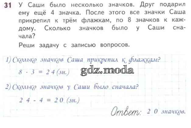 ОТВЕТ на задание № 31 Рабочая тетрадь по Математике 3 класс Моро Школа России
