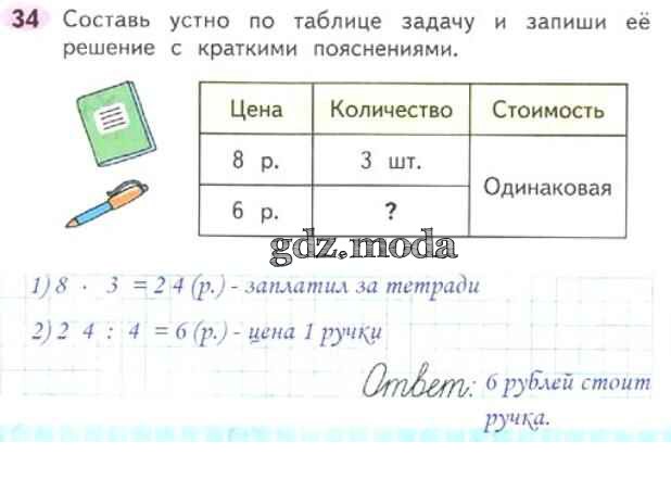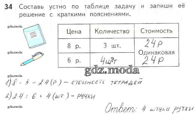 ОТВЕТ на задание № 34 Рабочая тетрадь по Математике 3 класс Моро Школа России