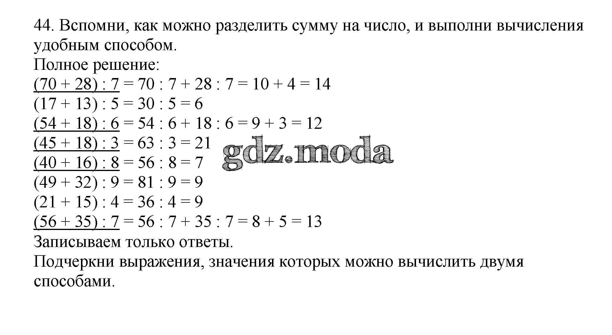 ОТВЕТ на задание № 44 Рабочая тетрадь по Математике 3 класс Моро Школа России