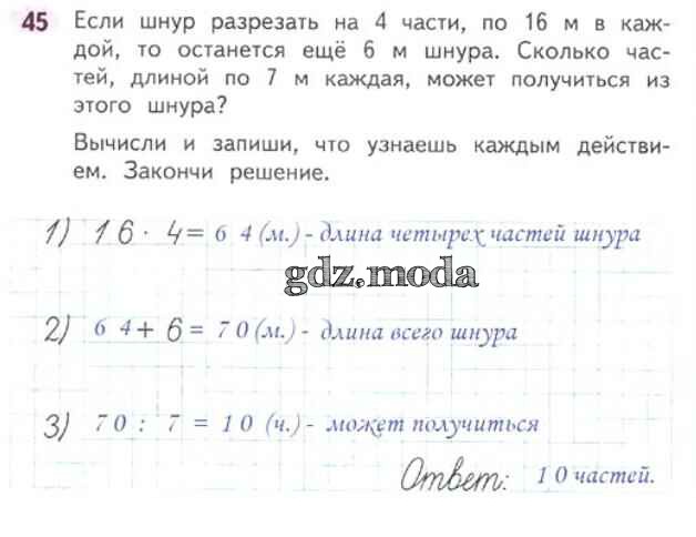 ОТВЕТ на задание № 45 Рабочая тетрадь по Математике 3 класс Моро Школа России
