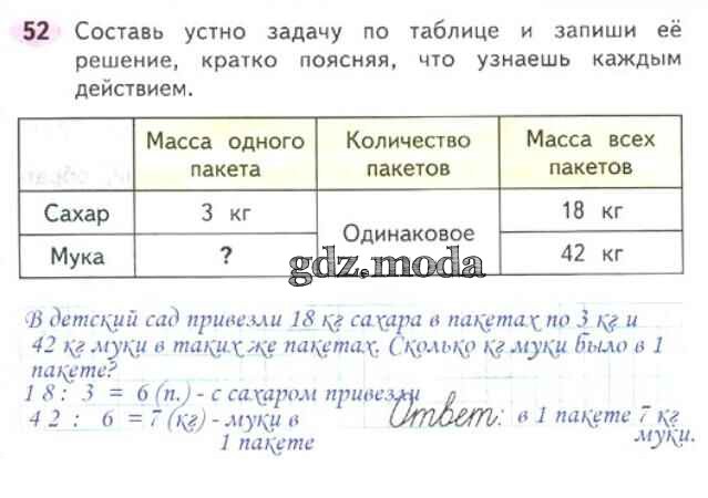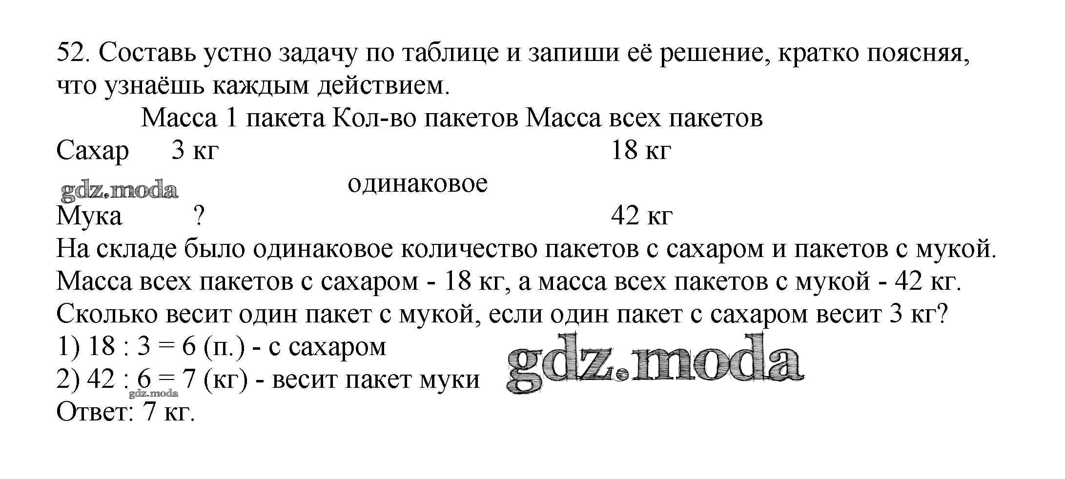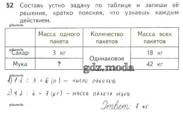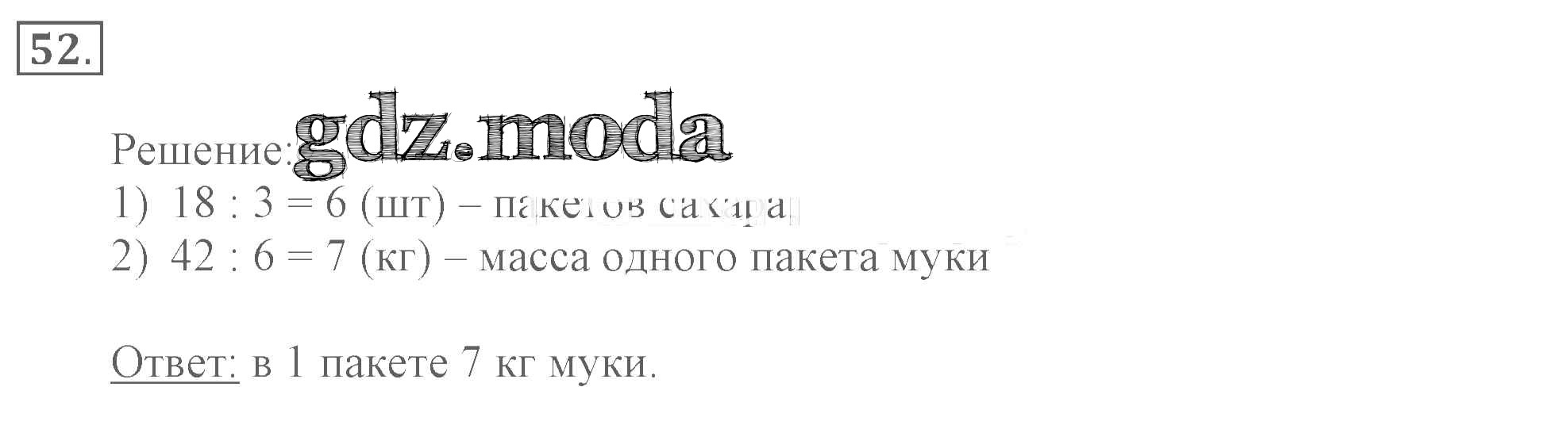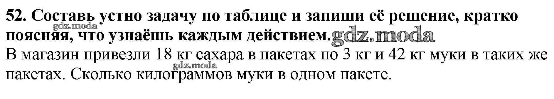 ОТВЕТ на задание № 52 Рабочая тетрадь по Математике 3 класс Моро Школа России