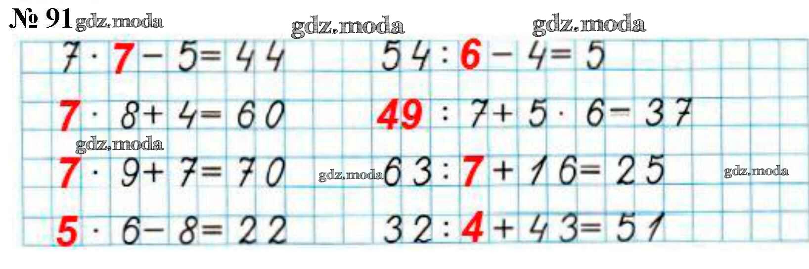ОТВЕТ на задание № 91 Рабочая тетрадь по Математике 3 класс Моро Школа России
