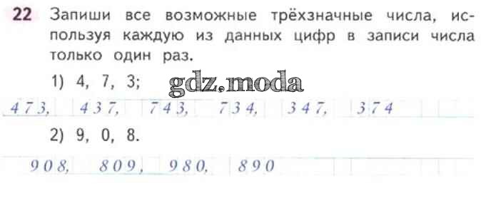ОТВЕТ на задание № 22 Рабочая тетрадь по Математике 3 класс Моро Школа России