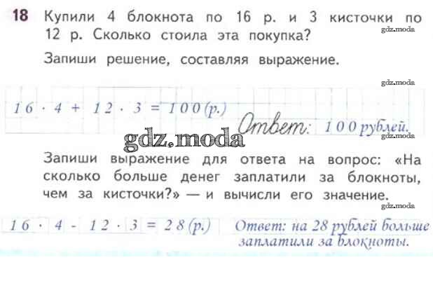 ОТВЕТ на задание № 18 Рабочая тетрадь по Математике 3 класс Моро Школа России