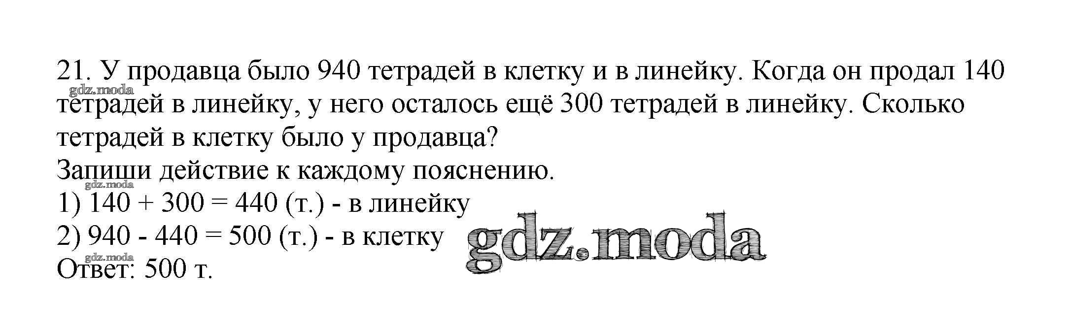 ОТВЕТ на задание № 21 Рабочая тетрадь по Математике 3 класс Моро Школа России