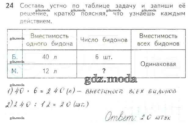 ОТВЕТ на задание № 24 Рабочая тетрадь по Математике 3 класс Моро Школа России