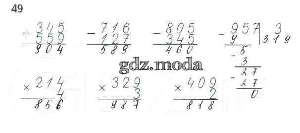ОТВЕТ на задание № 49 Рабочая тетрадь по Математике 3 класс Моро Школа России