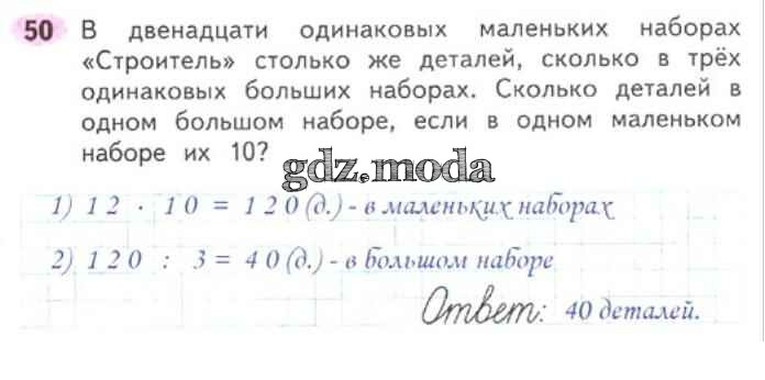 ОТВЕТ на задание № 50 Рабочая тетрадь по Математике 3 класс Моро Школа России