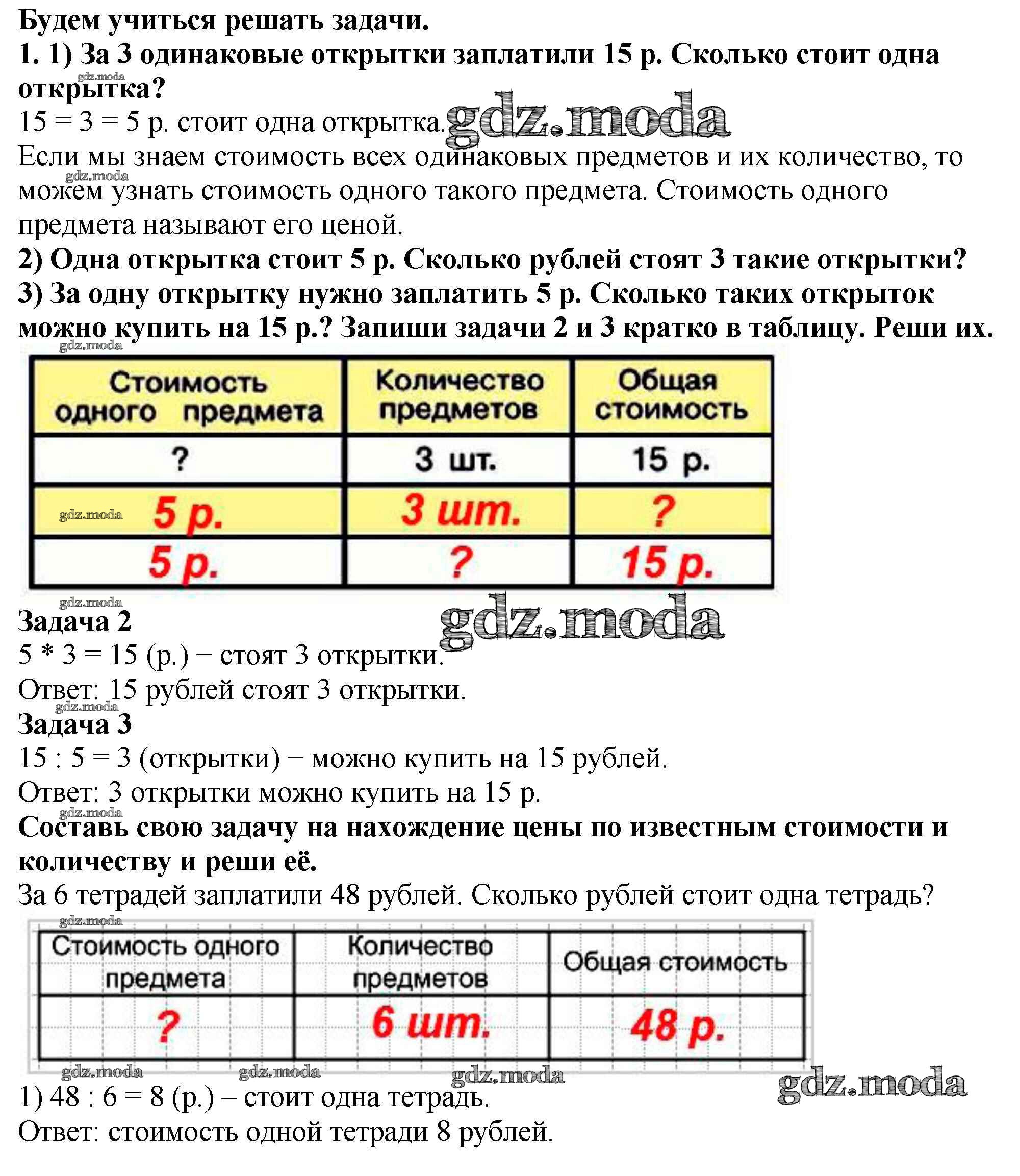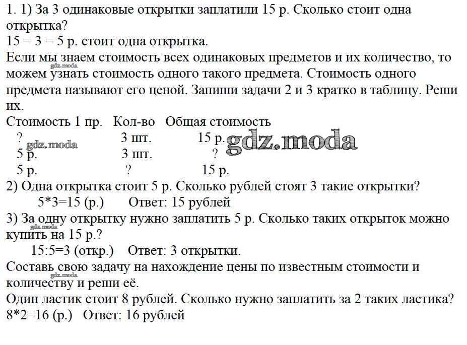 ОТВЕТ на задание № 1 Учебник по Математике 3 класс Моро Школа России