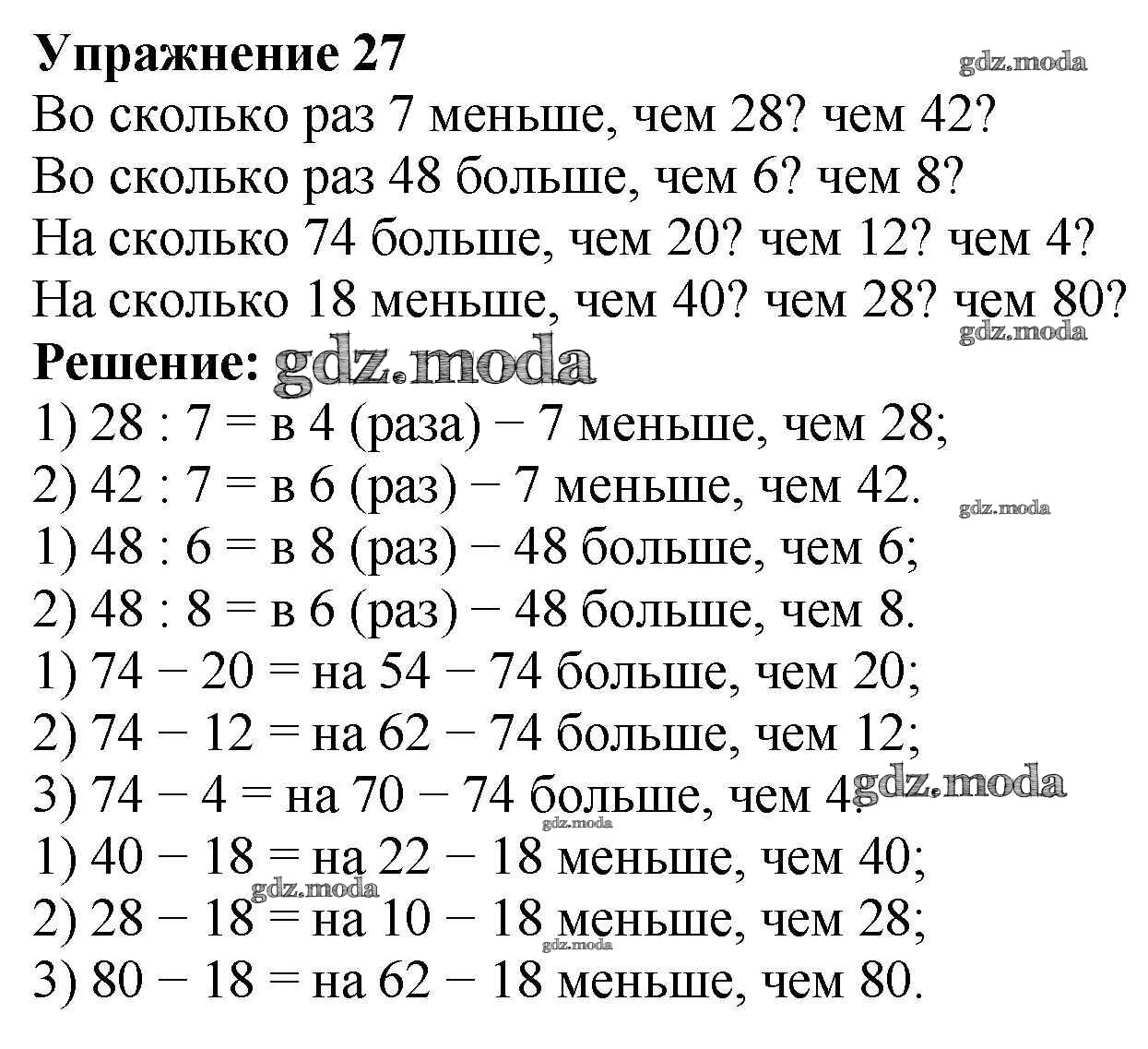 ОТВЕТ на задание № 27 Учебник по Математике 3 класс Моро Школа России