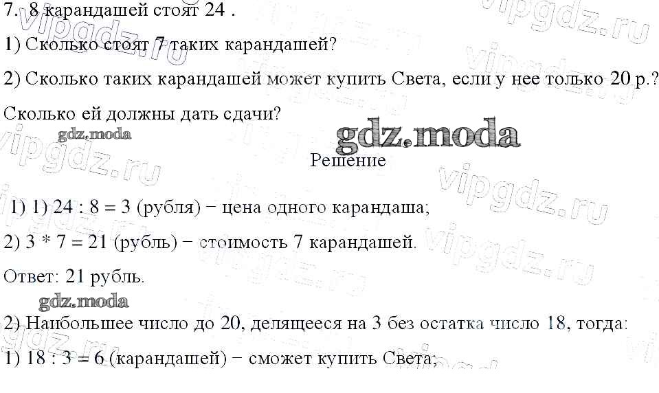 ОТВЕТ на задание № 7 Учебник по Математике 3 класс Моро Школа России