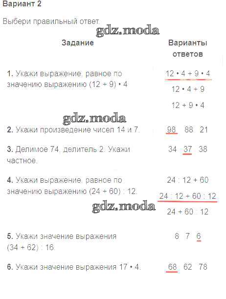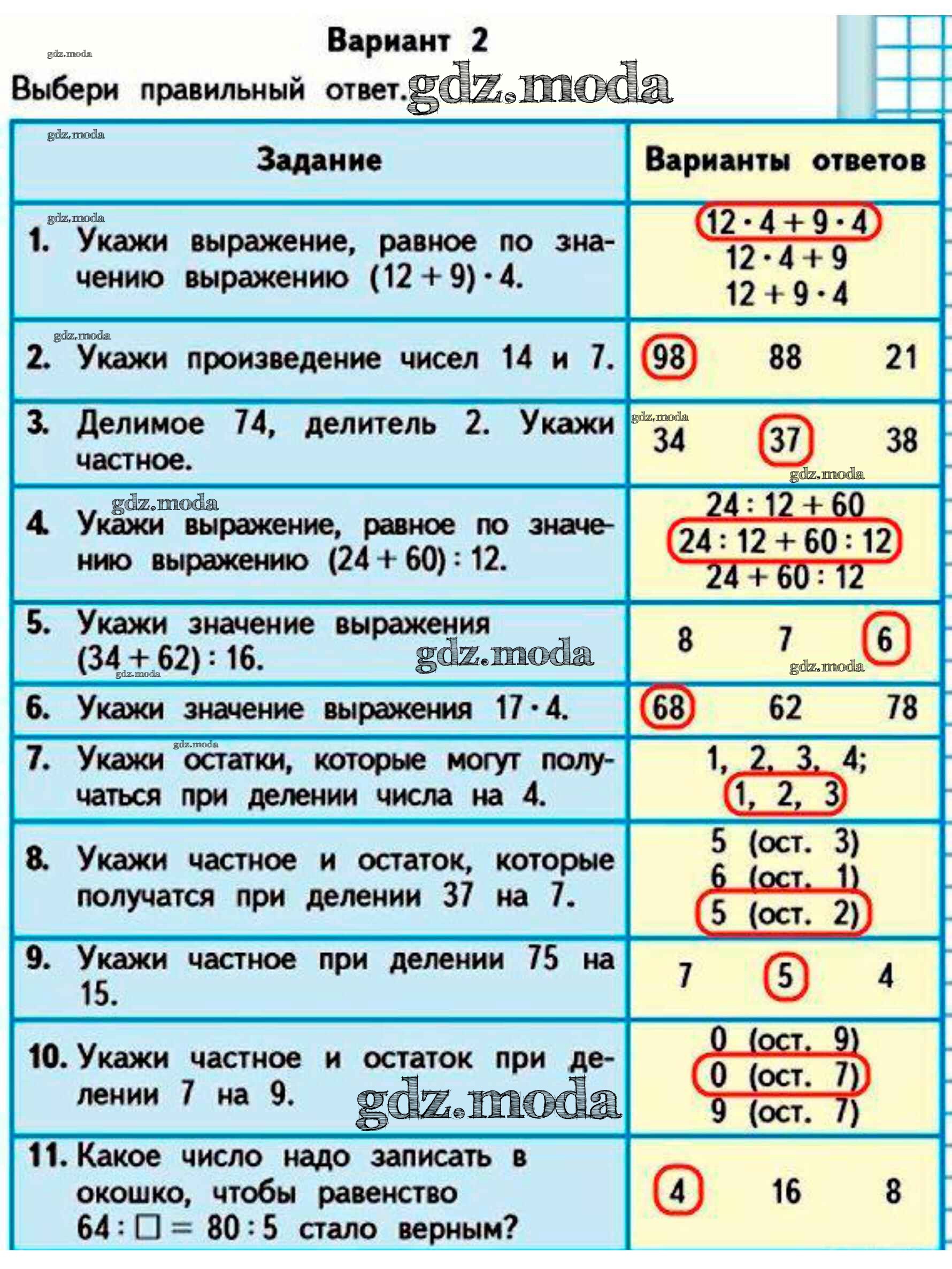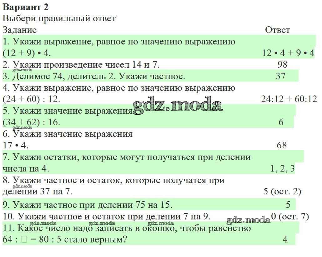 ОТВЕТ на задание № Вариант 2 Учебник по Математике 3 класс Моро Школа России