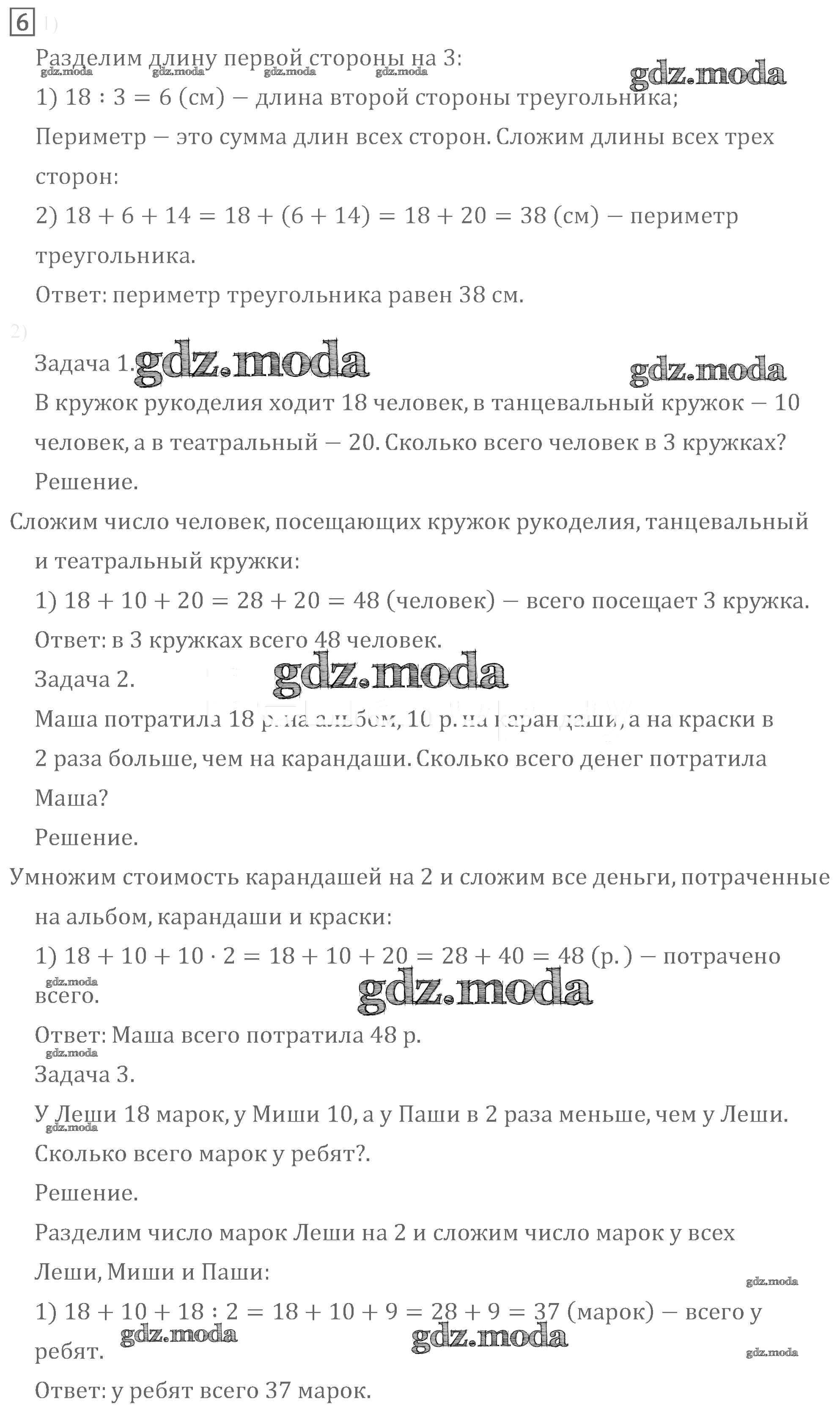 ОТВЕТ на задание № 6 Учебник по Математике 3 класс Моро Школа России