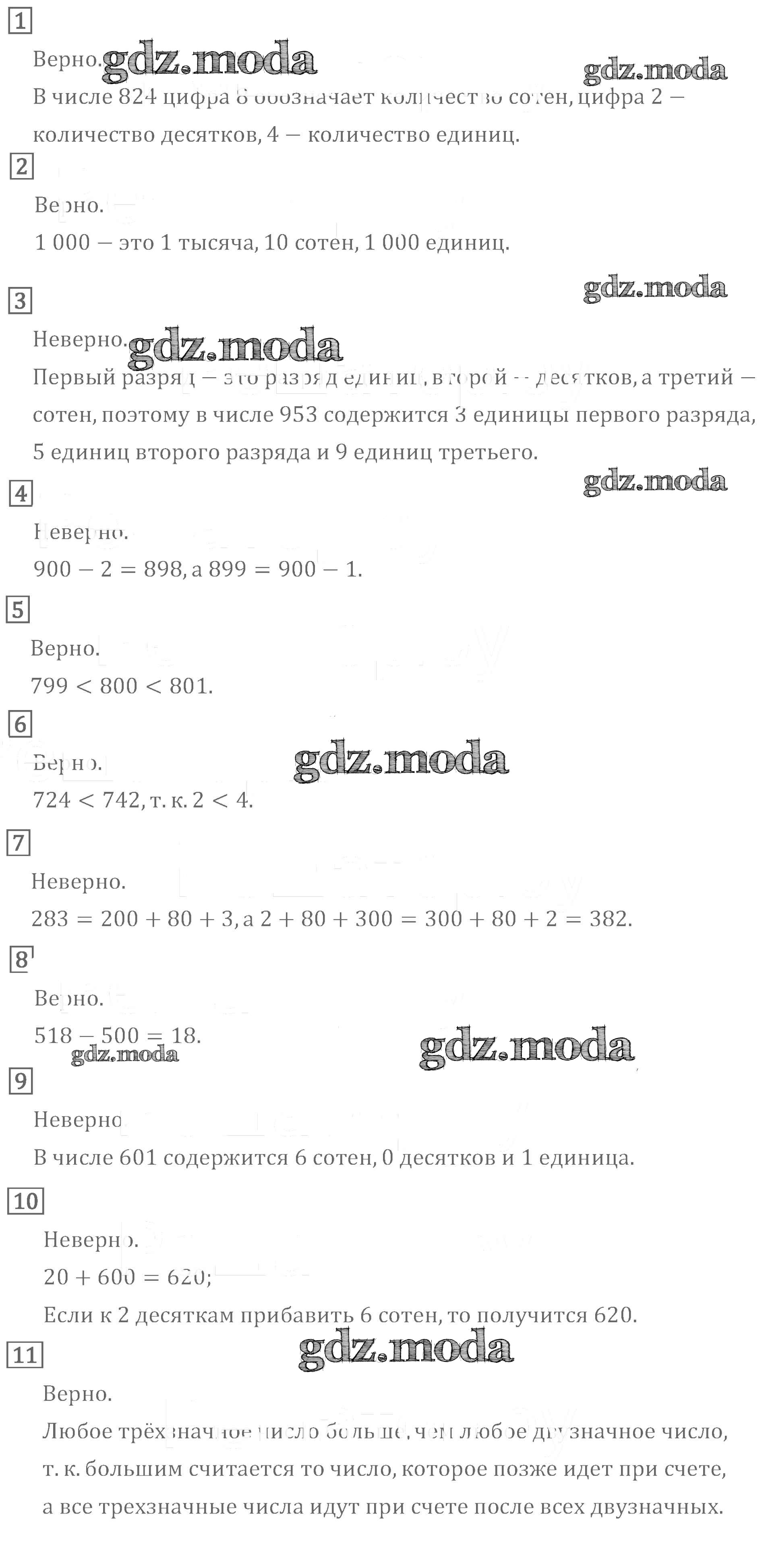 ОТВЕТ на задание № 1-11 Учебник по Математике 3 класс Моро Школа России