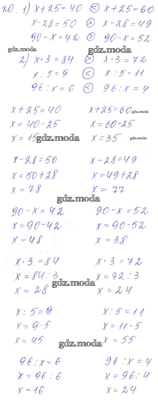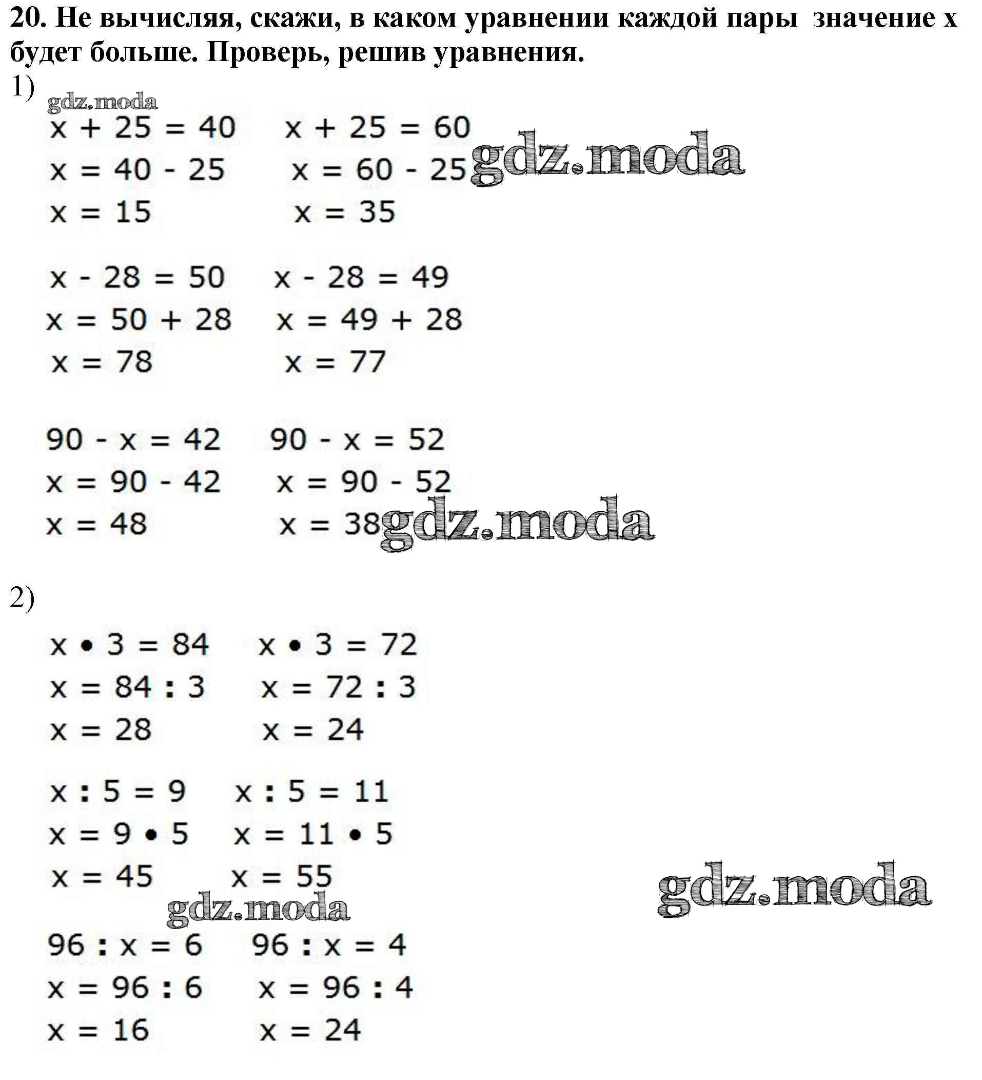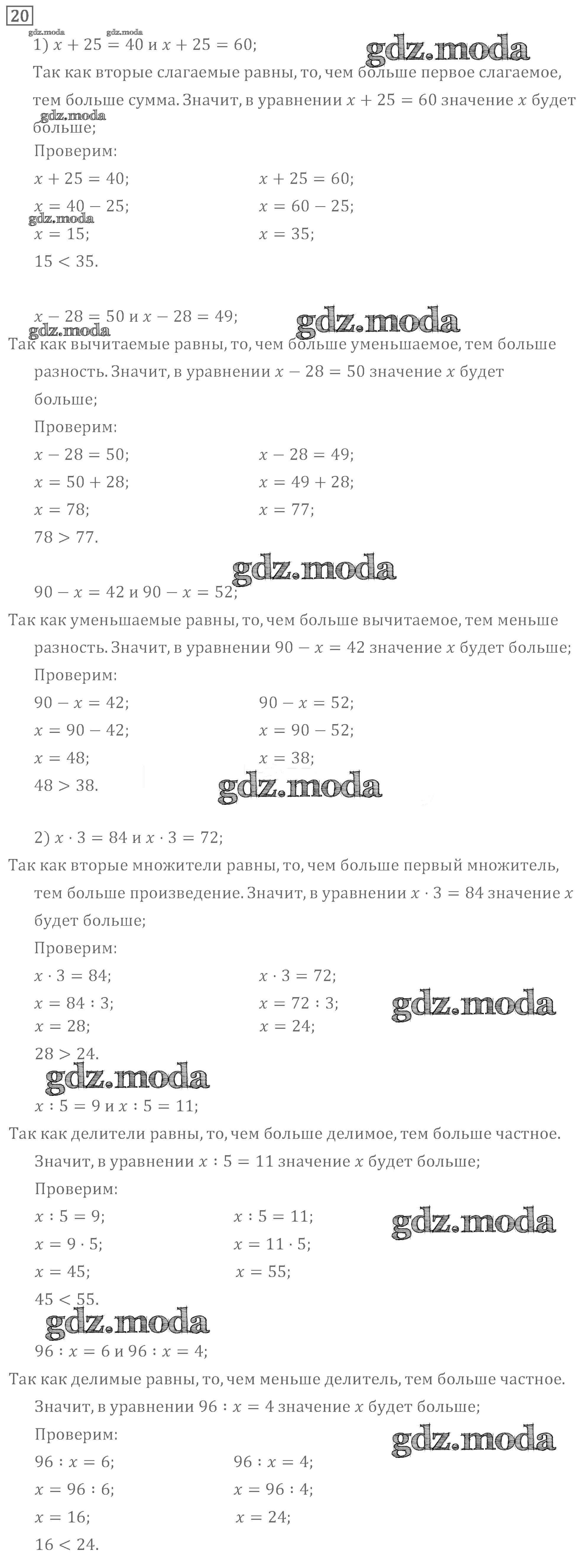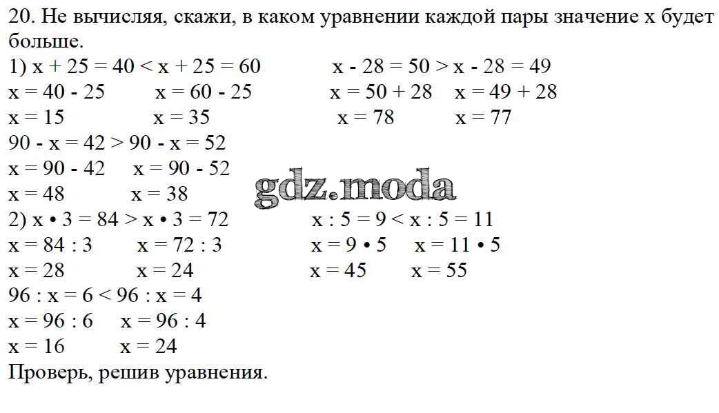 ОТВЕТ на задание № 20 Учебник по Математике 3 класс Моро Школа России