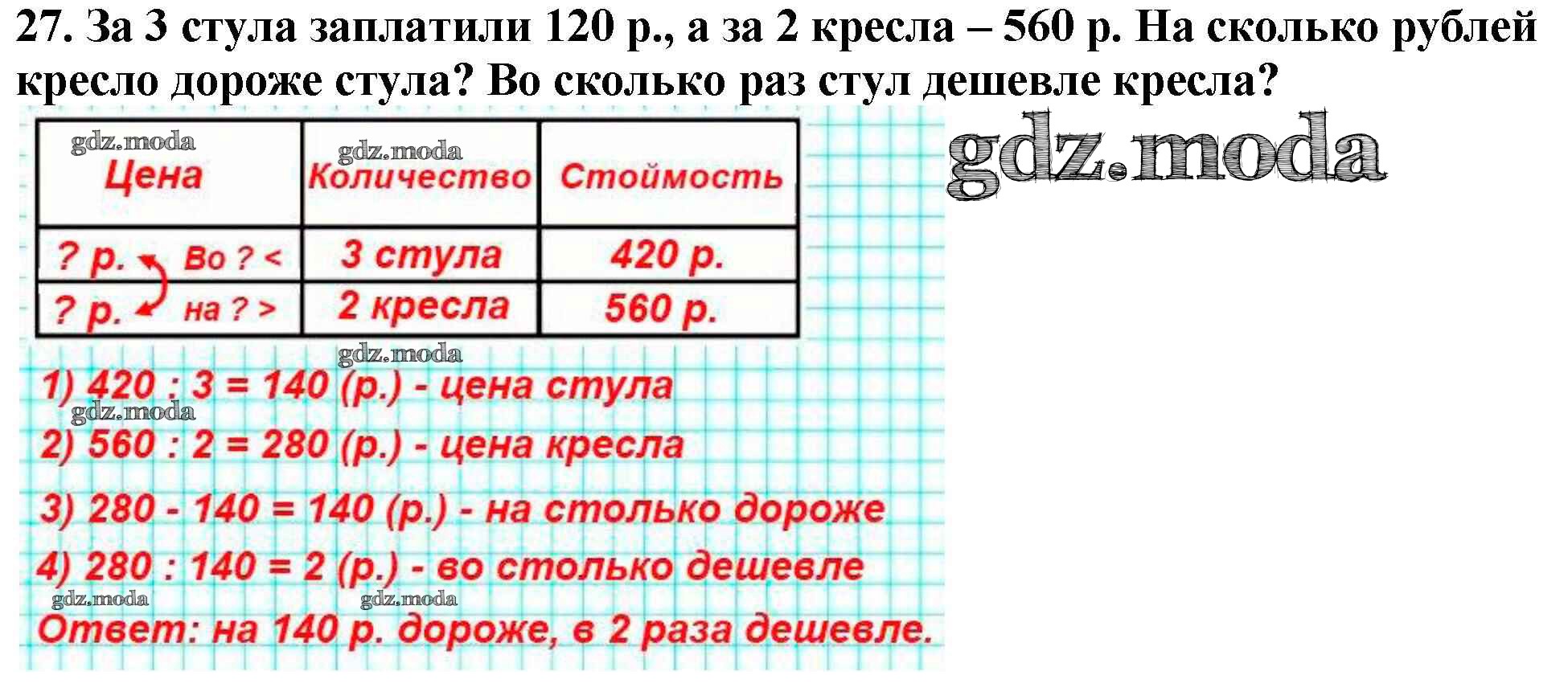 ОТВЕТ на задание № 27 Учебник по Математике 3 класс Моро Школа России