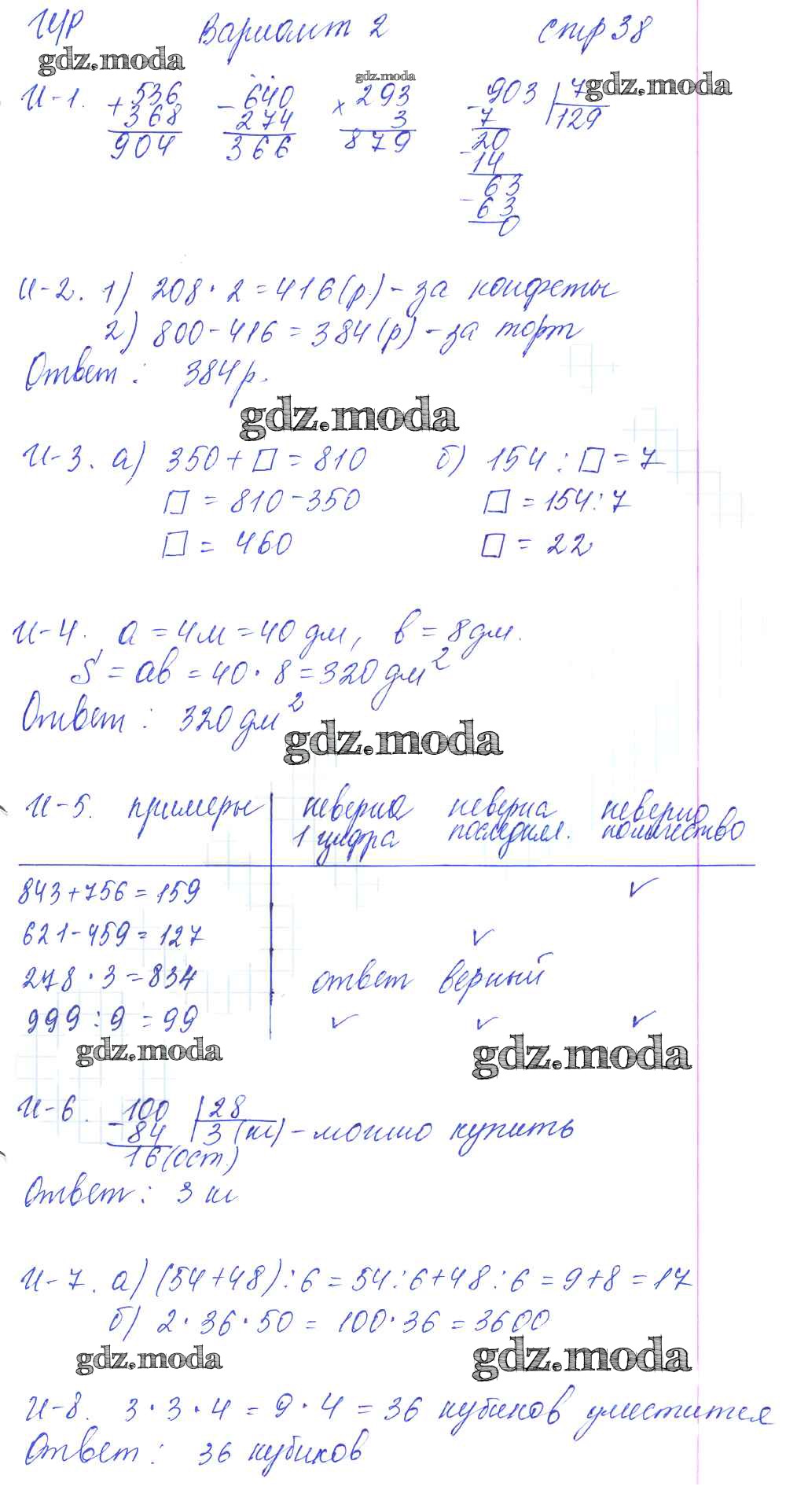 ОТВЕТ на задание № вариант 2 Контрольные и диагностические работы по Математике 3 класс Башмаков Планета знаний