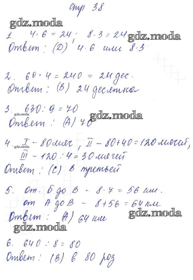 ГДЗ решение к заданию № 38 Математика 3 класс рабочая тетрадь Башмаков М.И. Аст/Астрель 2016 Часть 1, Часть 2 ФГОС бесплатно на гдз.мода!