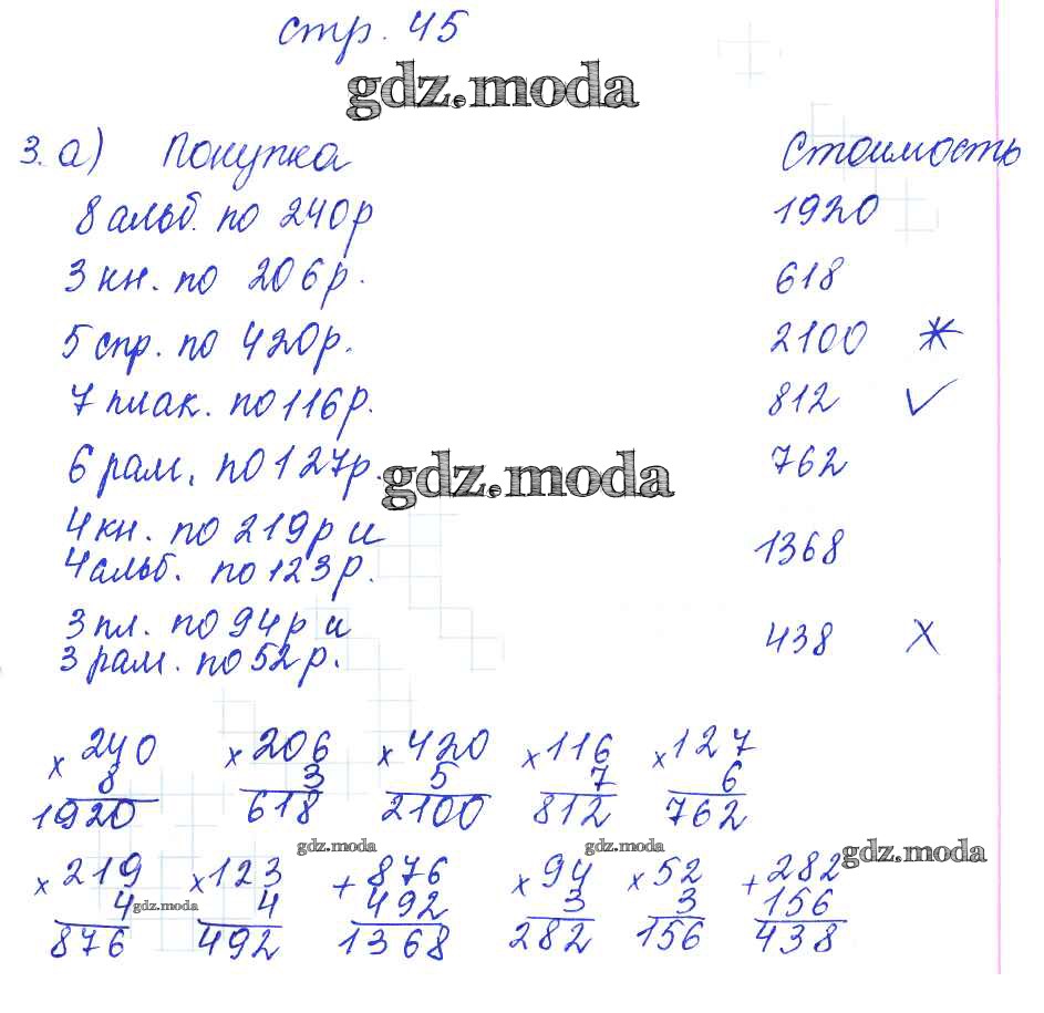 ГДЗ решение к заданию № 45 Математика 3 класс рабочая тетрадь Башмаков М.И. Аст/Астрель 2016 Часть 1, Часть 2 ФГОС бесплатно на гдз.мода!