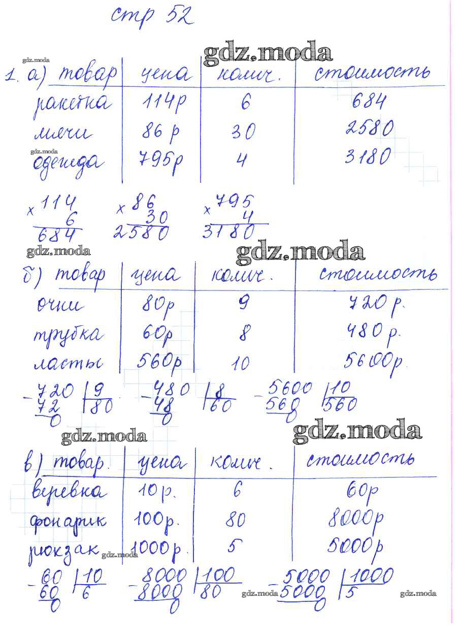 ГДЗ решение к заданию № 52 Математика 3 класс рабочая тетрадь Башмаков М.И. Аст/Астрель 2016 Часть 1, Часть 2 ФГОС бесплатно на гдз.мода!