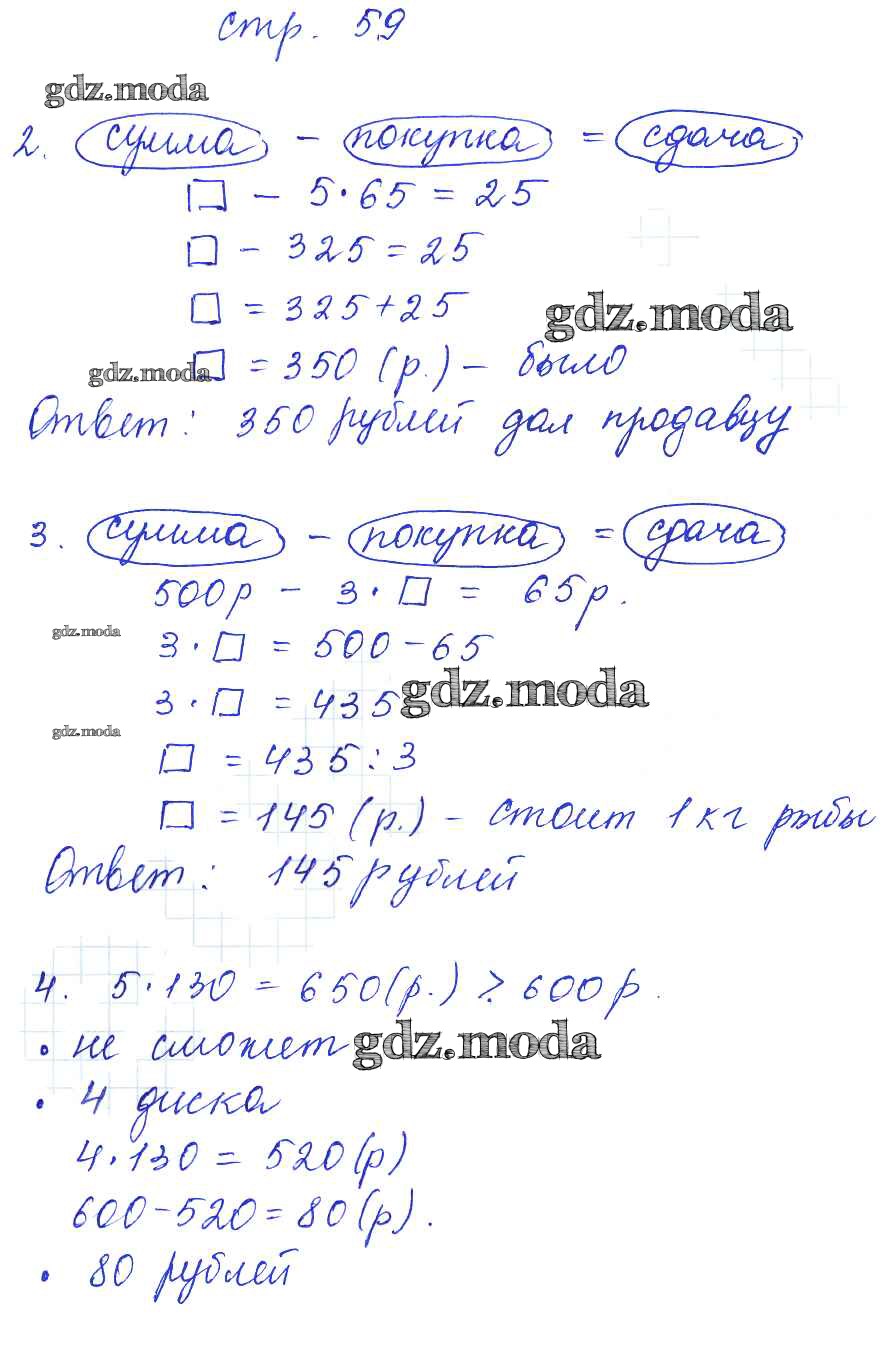 ГДЗ решение к заданию № 59 Математика 3 класс рабочая тетрадь Башмаков М.И. Аст/Астрель 2016 Часть 1, Часть 2 ФГОС бесплатно на гдз.мода!