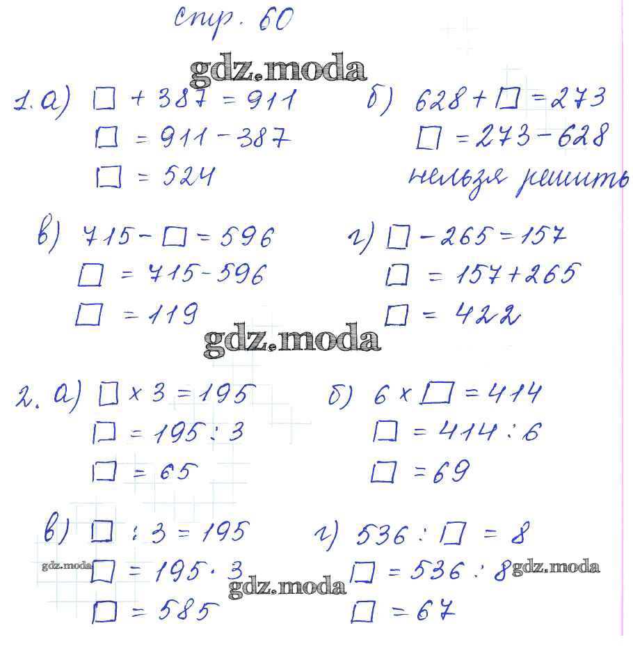 ГДЗ решение к заданию № 60 Математика 3 класс рабочая тетрадь Башмаков М.И. Аст/Астрель 2016 Часть 1, Часть 2 ФГОС бесплатно на гдз.мода!