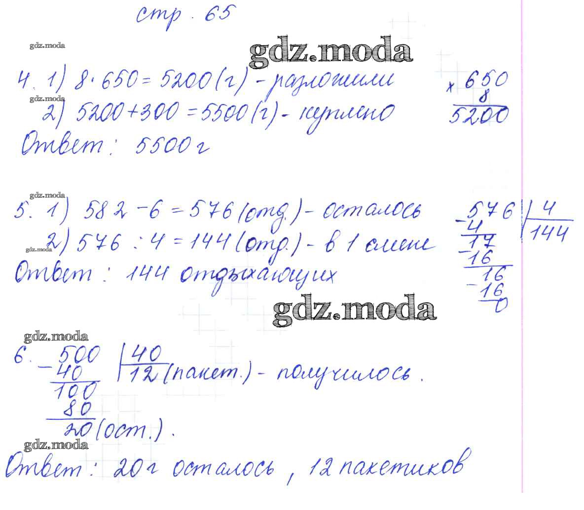 ГДЗ решение к заданию № 65 Математика 3 класс рабочая тетрадь Башмаков М.И. Аст/Астрель 2016 Часть 1, Часть 2 ФГОС бесплатно на гдз.мода!